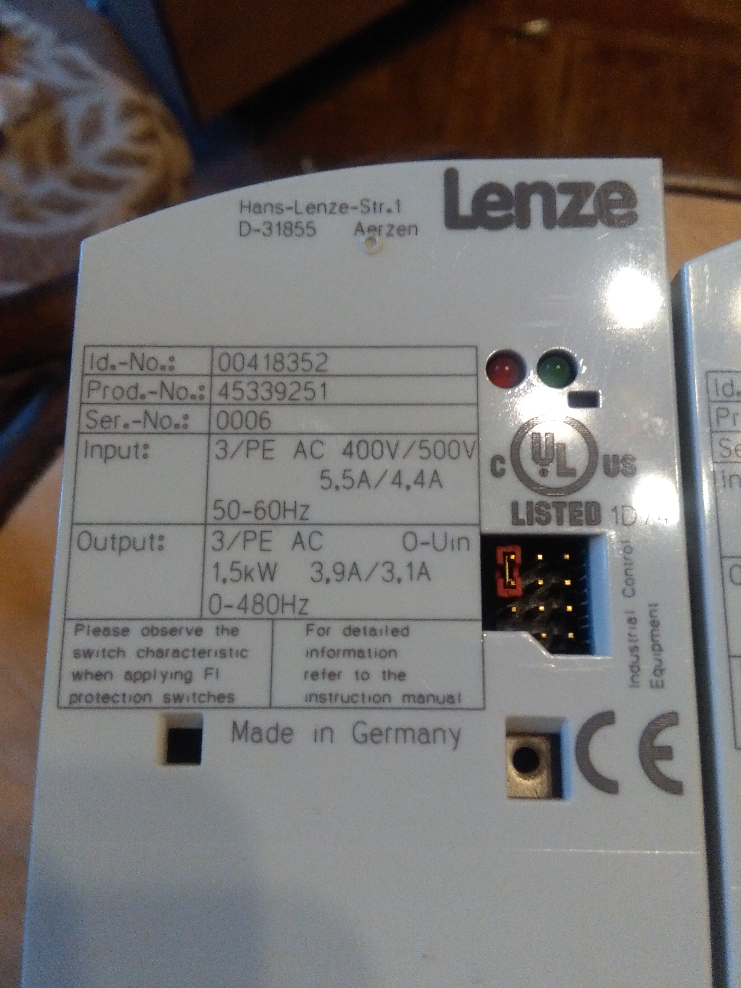 Lenze E82EV152_4B 3ф 380в. ----> 3ф 380в 1.5 кВт 0-480Гц Векторный . пр-во Германия. Работали меньше года. БЕЗ ПАНЕЛИ.