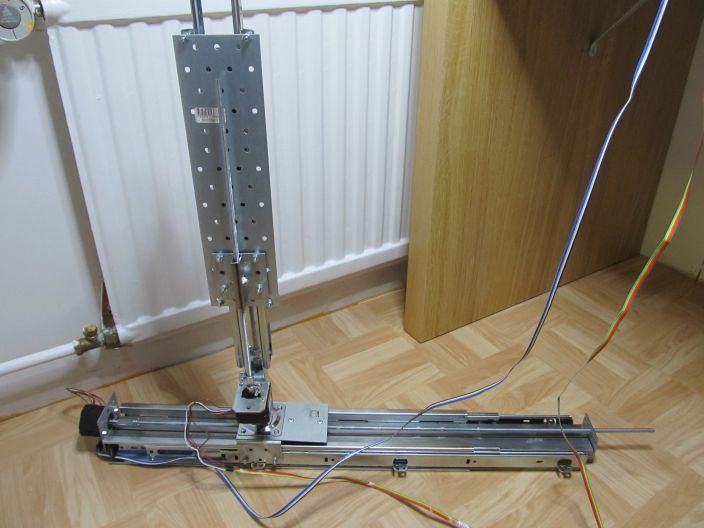 Из железной ножки для табуретки собирается родится очень бюджетная пенорезка (шаговики около 3 евро за штуку от австрийцев, самодельный драйвер шаговиков на базе бесплатных образцов от Texas Instruments :) ). На фотографии одна ее нога.