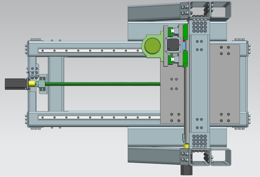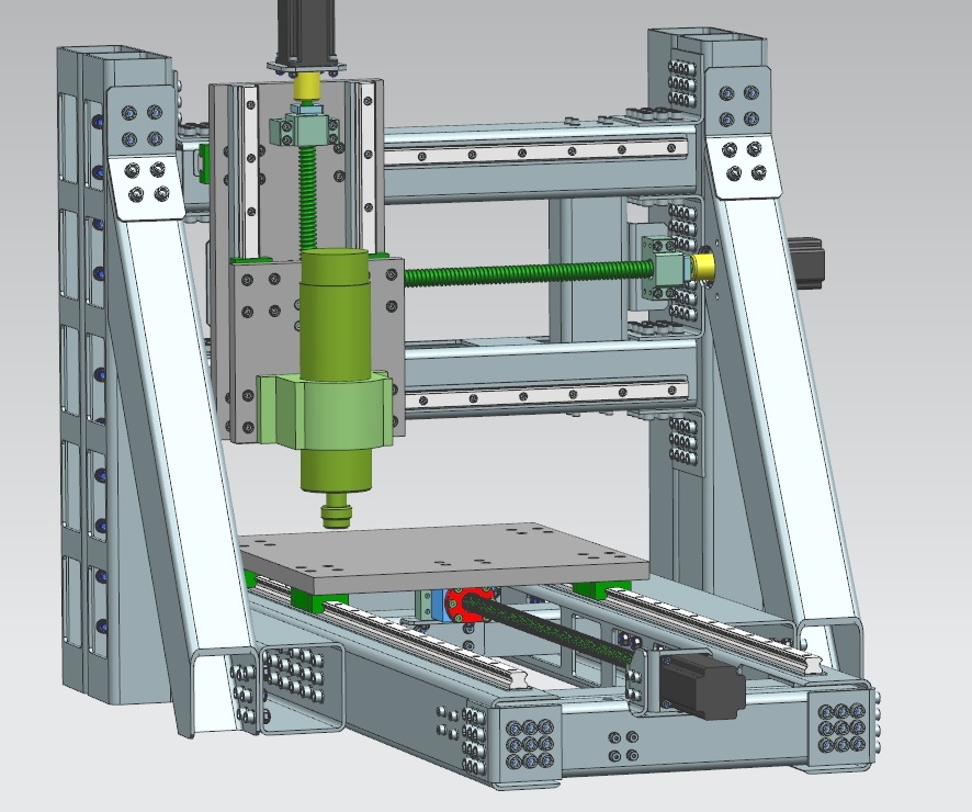 Вот картинки сырой модели станка (не все крепления шаговиков, отсутствуют защитные кожухи, концевики, датчики, коммуникации и тпд).