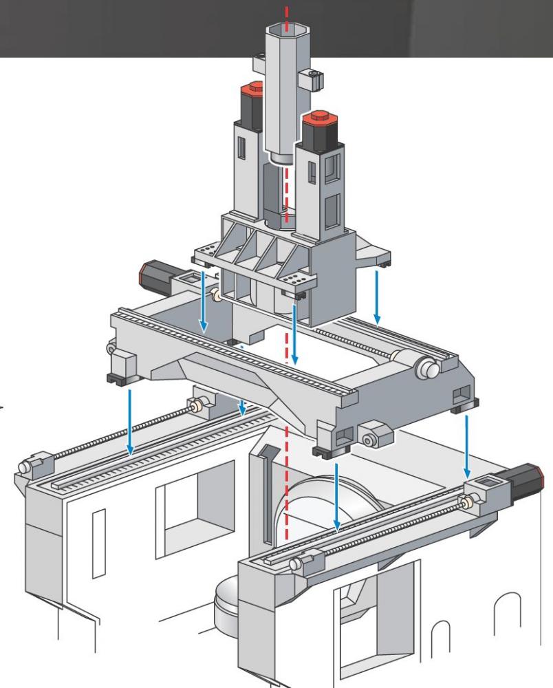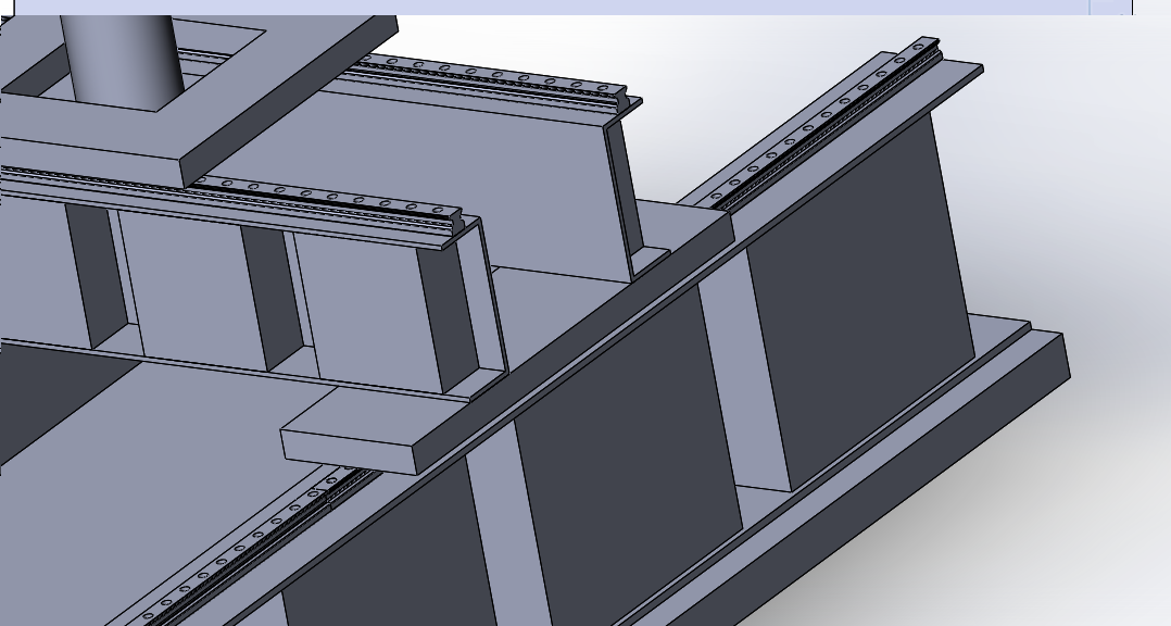 Каретки оси Х крепятся к листу 30-50 мм толщиной, под 90 градусов к которому также крепится усиленный швеллер только не 300 мм а 160 или 140, сверху швеллера установлены направляющие для оси Y.