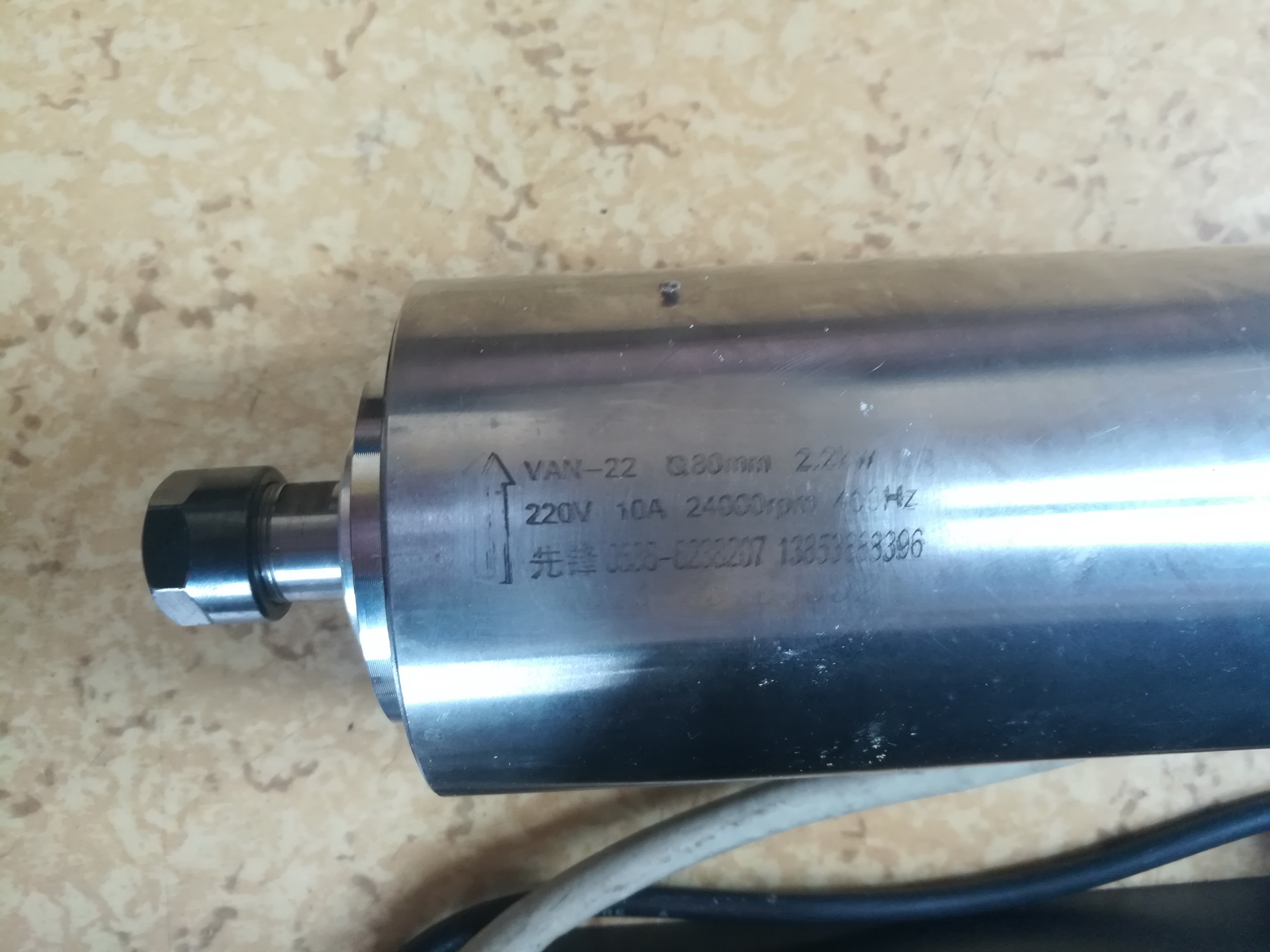- Шпиндель 2.2 кВт , 24000 об/мин , 220в, охлаждение водяное. Новый.