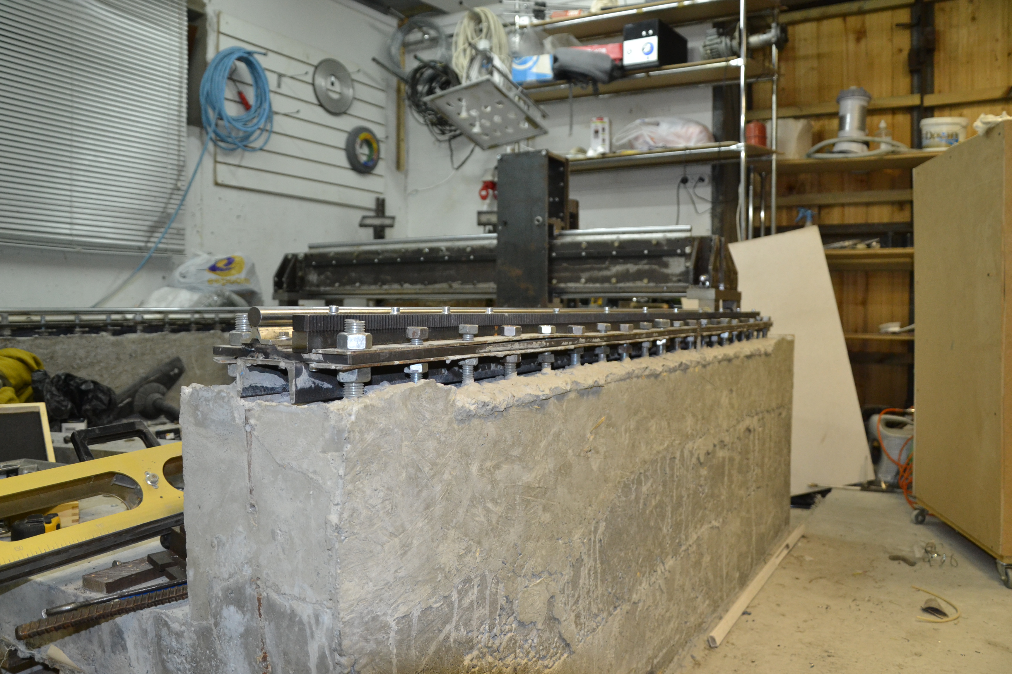 направляющие sbr20 закреплены на основании состоящим из 10мм полосы с прикрученным швеллером 65 снизу, все это крепится на 40-ка шпильках на болтах.