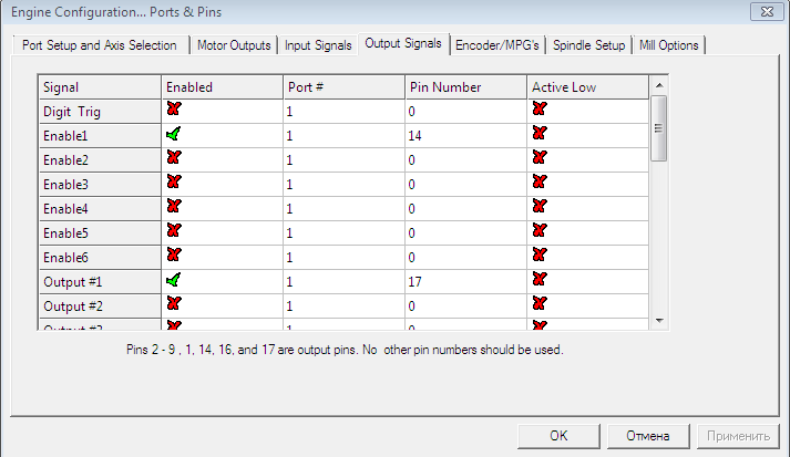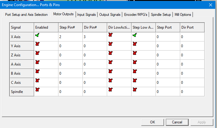 а в закладке пины укажи порт "1" для дир и степ (стоит 0)
