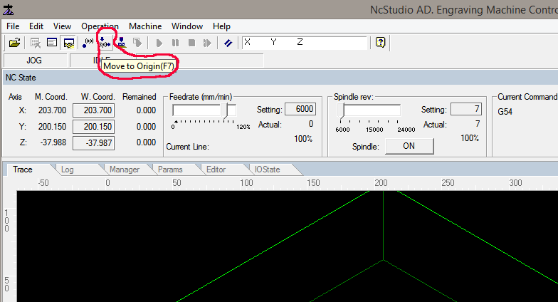 Myve Origin - передвинет оси в ноли по рабочим координатам с учетом безопасного отступа по Z из любого местоположения.