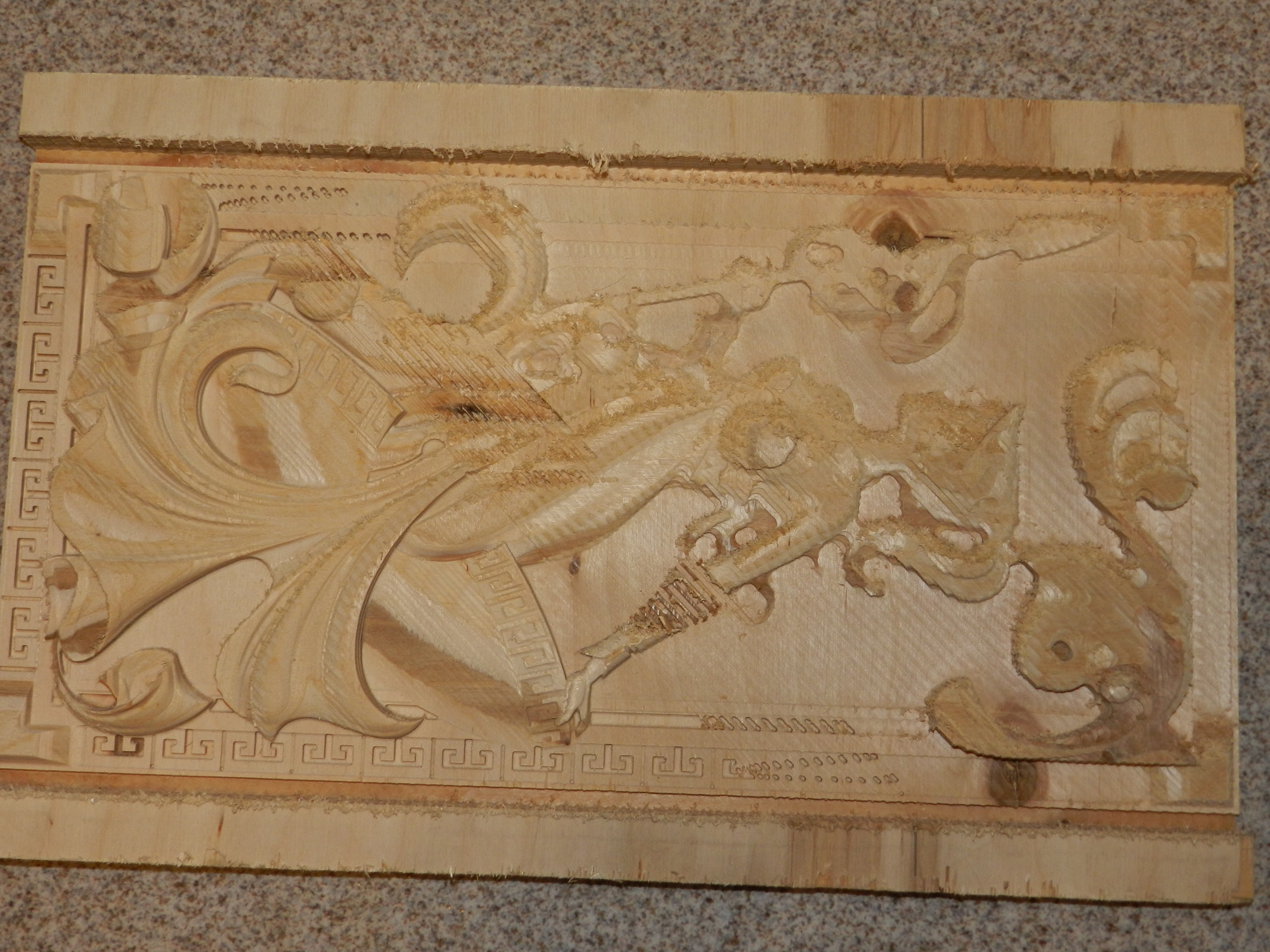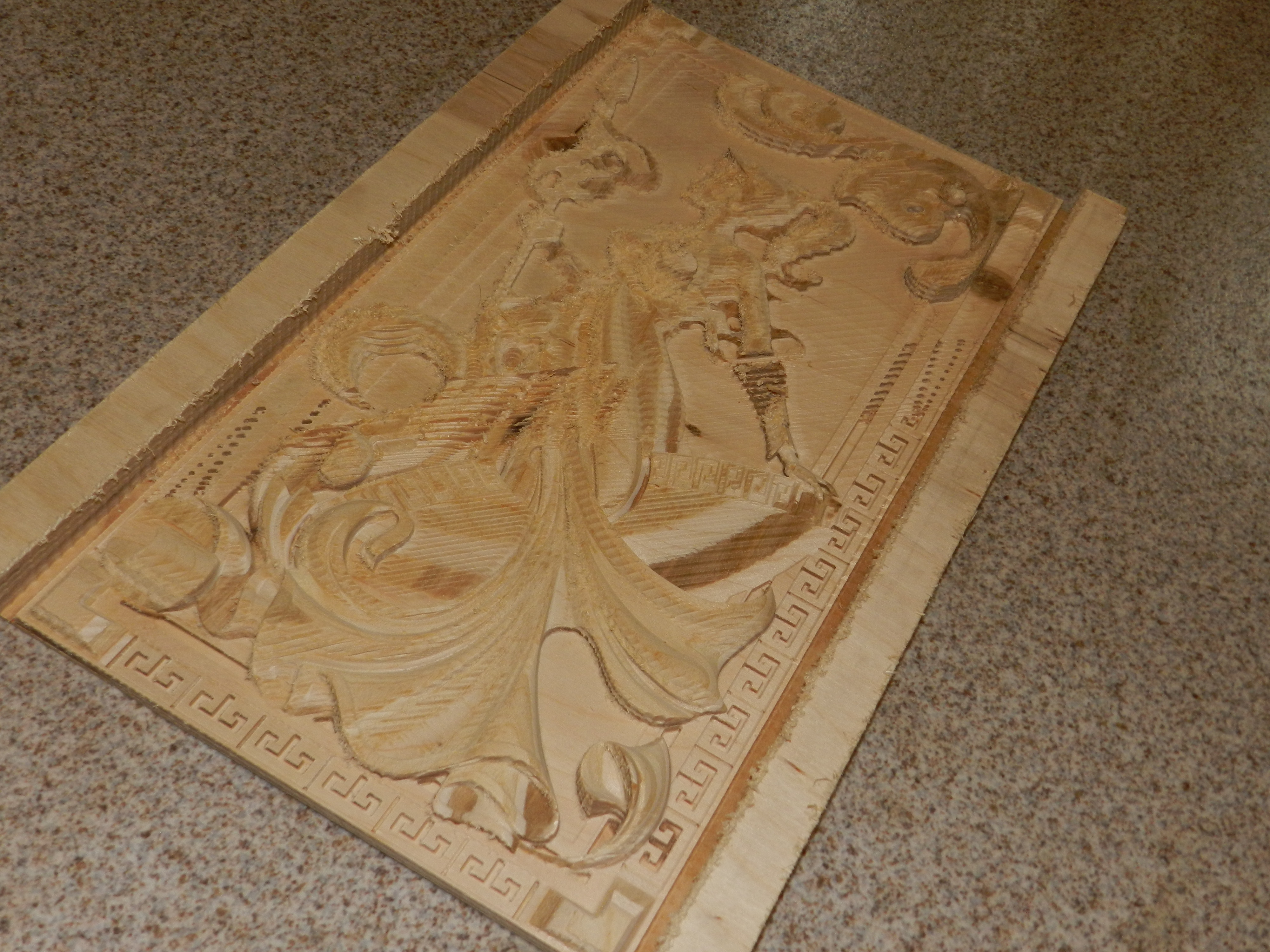 Нажал старт. Пошла чистовая траектория. И тут я заметил что фреза зарезает всю картину с правой стороны и не дорезает с левой. Примерно на 1-2мм.(на фото будет видно). То есть пошло смещение по х в левую сторону. Очевидно. Решил доделать картину. Сделал примерно пол картины. Нажал feed hold, выключил питание станка, но оставил компьютер включенным, с запущенным матчем (чтобы вдруг не сбились координаты, на которых остановился).
