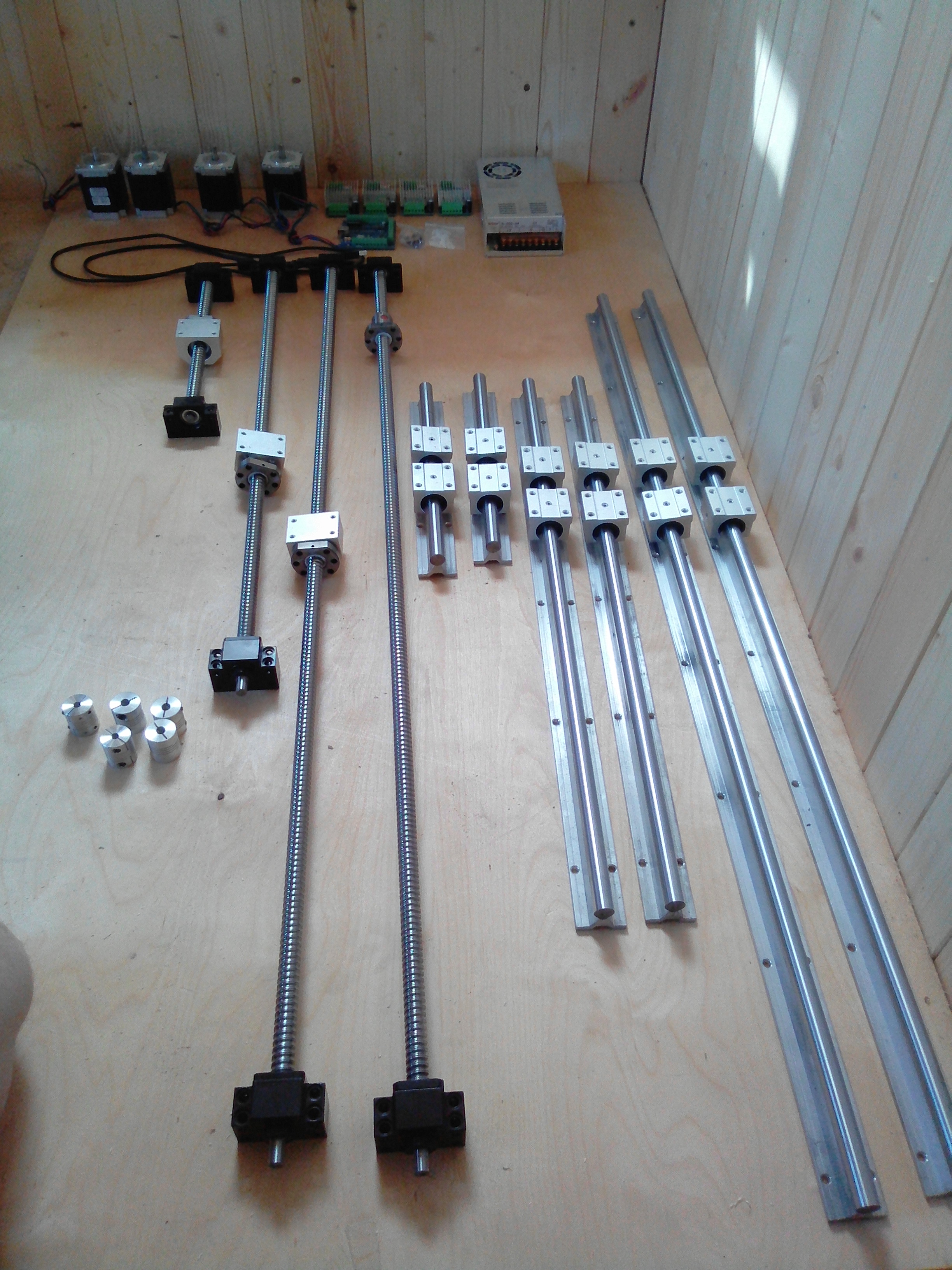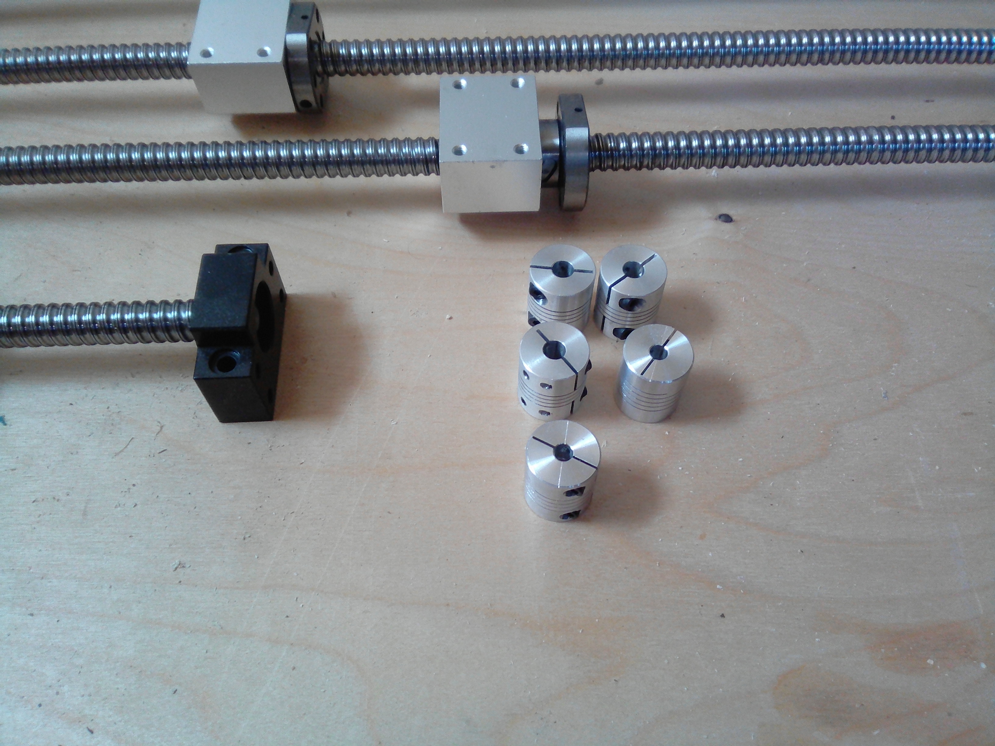 Продаю ходовую: ШВП следующих размеров: 1150мм 2шт, 750мм, 350мм, к ним в комплекте гайки и опорные подшипники,втулки 1 втулку надо расточить так как она рассчитана на вал 6мм (валы ШВП 8мм), алюминиевые каретки(для зацепления с порталом) 3 шт. 1-й не хватает видно на фото.