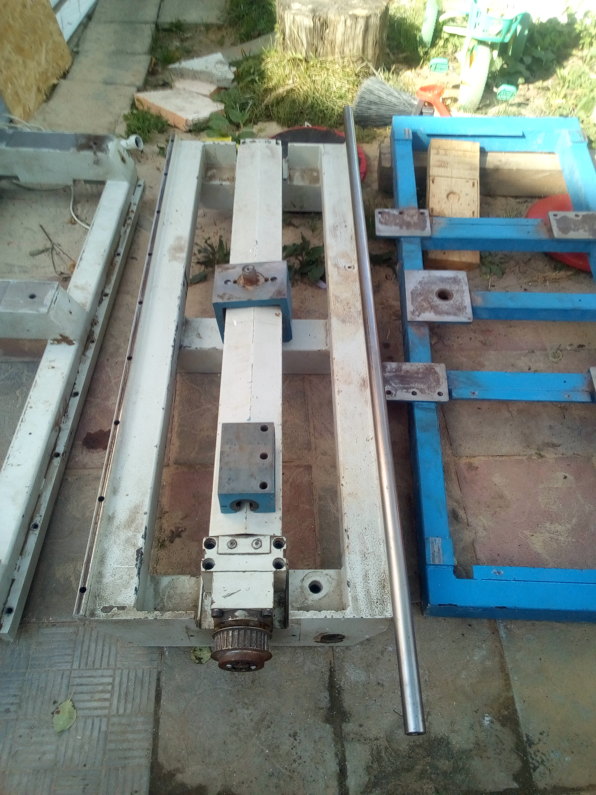 Дополнительно есть такой же винт с гайкой (в гайку нужно всыпать шарики) и 2 опоры (опоры от другого винта и на этот конец с ходу не встают, нужно смотреть может придется доработать, мне это ненужно было) И есть стол. Рельсы имеют небольшие дефектики, но лично я критичного ничего не вижу. Хотел в свое время делать большой фрезер, да так и не дошли руки. Вес одной оси в сборе порядка 100кг (может и больше). Отдам все скопом, если южная, юговосточная или восточная часть МО, могу привезти вам. Все находится в Раменском районе Московской области недалеко от д. Чулково.