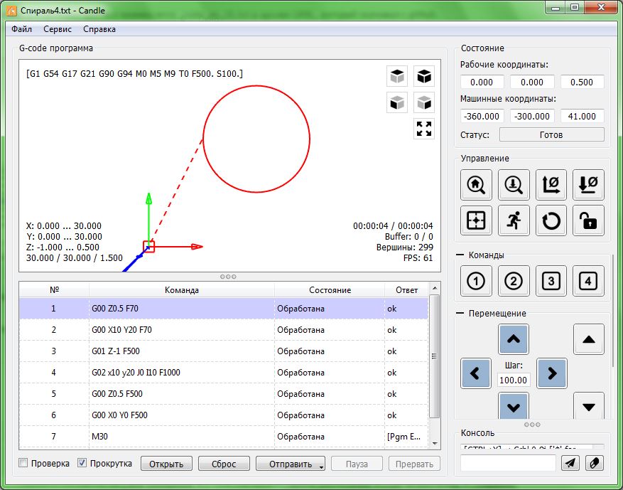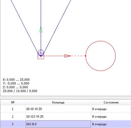 Так и с этими кругами. Команду G02 I10 F80 оболочка поняла нормально и нарисовала круг. Но при отправке на станок вылезает ошибка. Для станка должна быть полная команда вида G02 X-3.0 Y0.0 I3.0 J0.0 F60. Т.е. явно должны быть указаны X, Y, I, J. В любых других вариантах вылезают ошибки.