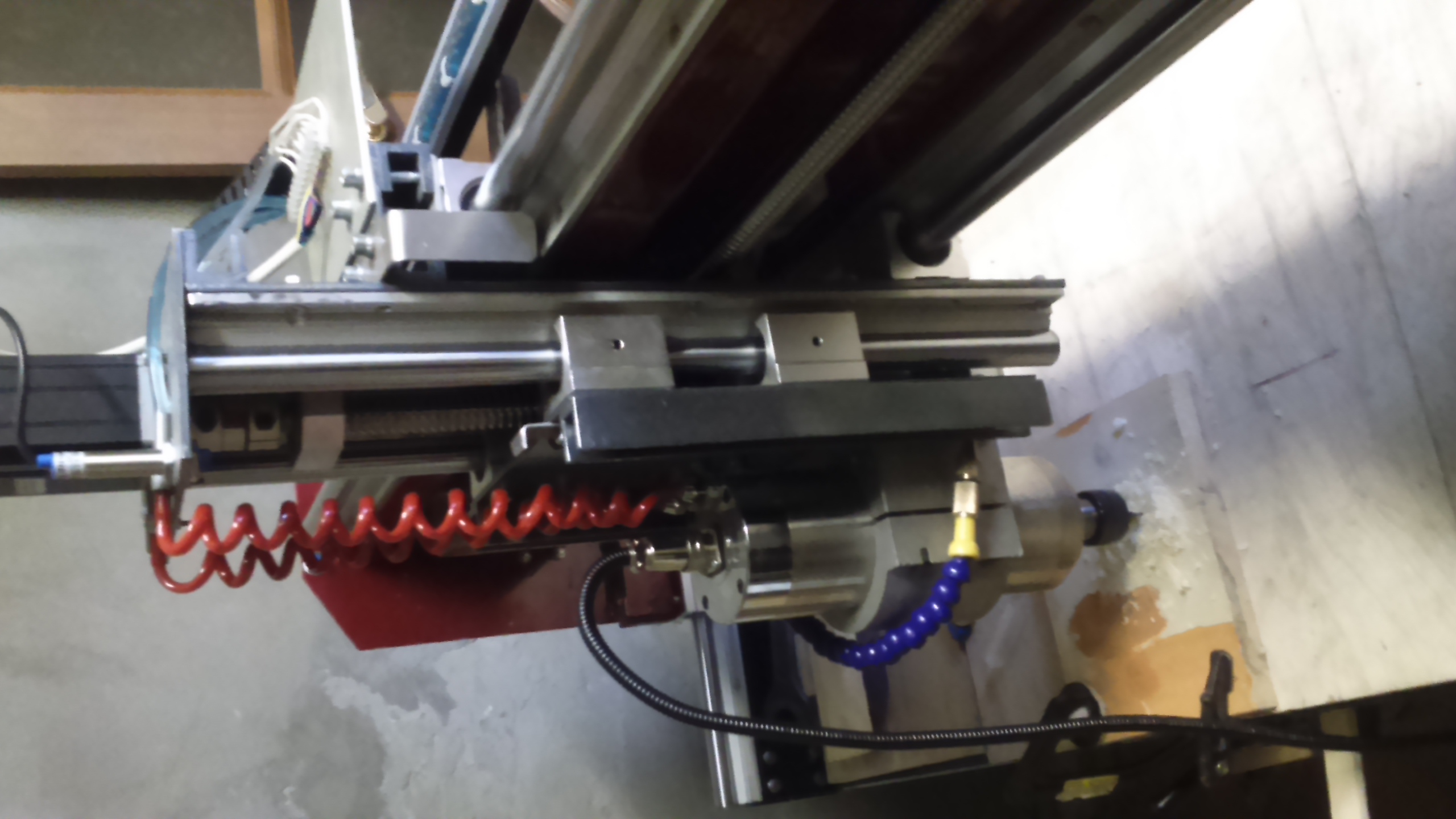 Это все была лирика и желание высказаться, а то накипело за это время. По факту получился станок с рабочим полем примерно 800 на 1400 (точных замеров не производил, но потери от первоначального 1000 на 1500 есть). Все порталы на 20 рельсах, винты тоже 20, на Х и У 2010 на Z 2005. Все это крутят моторы 57HS112с драйверами DM542, ну и плата управления LPT-DPTR 1.02. Шпиндель 2и2 на воде.