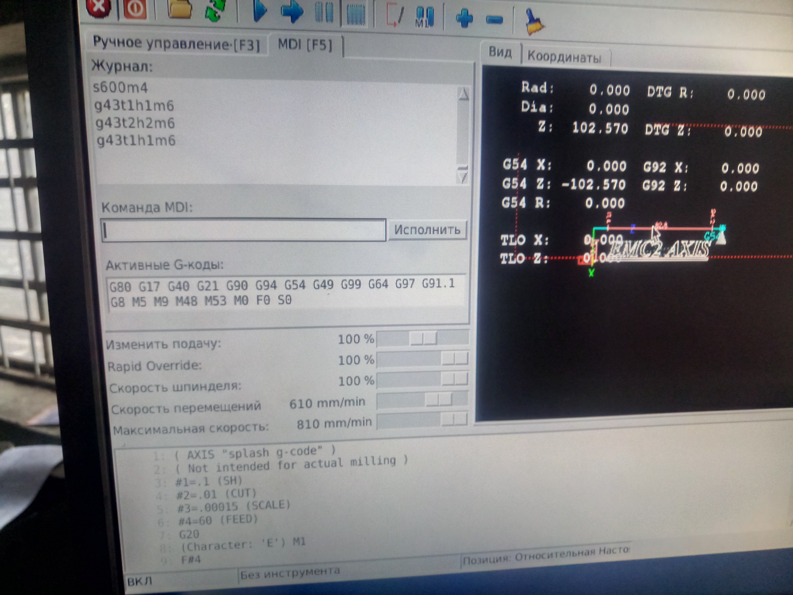 Станок на шаговиках, фото версии ПО, и фото активных g кодов