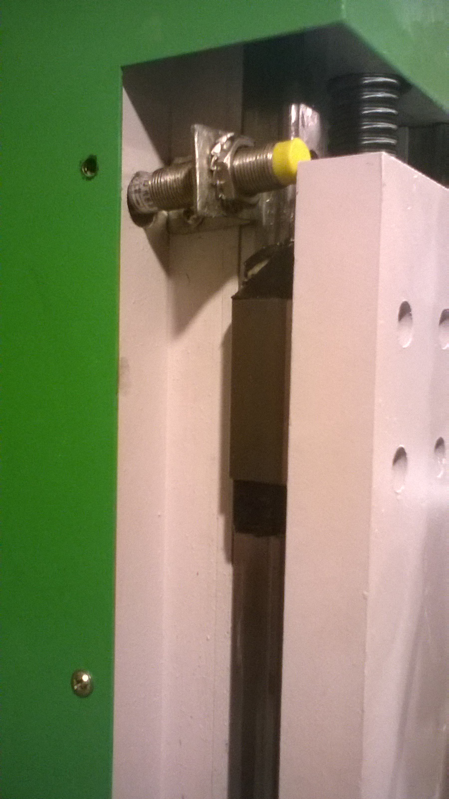 Пришел пусконаладчик - снял кожух, что там трос опустил и все заработало, это было вечером, наладчик ушел было поздно, не закрепил кожух - забыл.