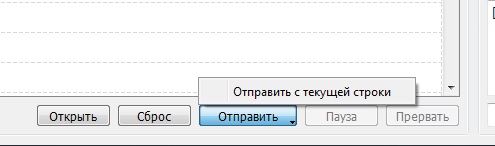 В Candle все просто! Выбираешь нужную строку, перемещаясь по программе с помощью клавиш Page Up/Down - быстро, но грубо и стрелками. Затем надо нажать на 1 секунду на стрелку на кнопке "Отправить" и появится окошко с надписью "Отправить с текущей строки".