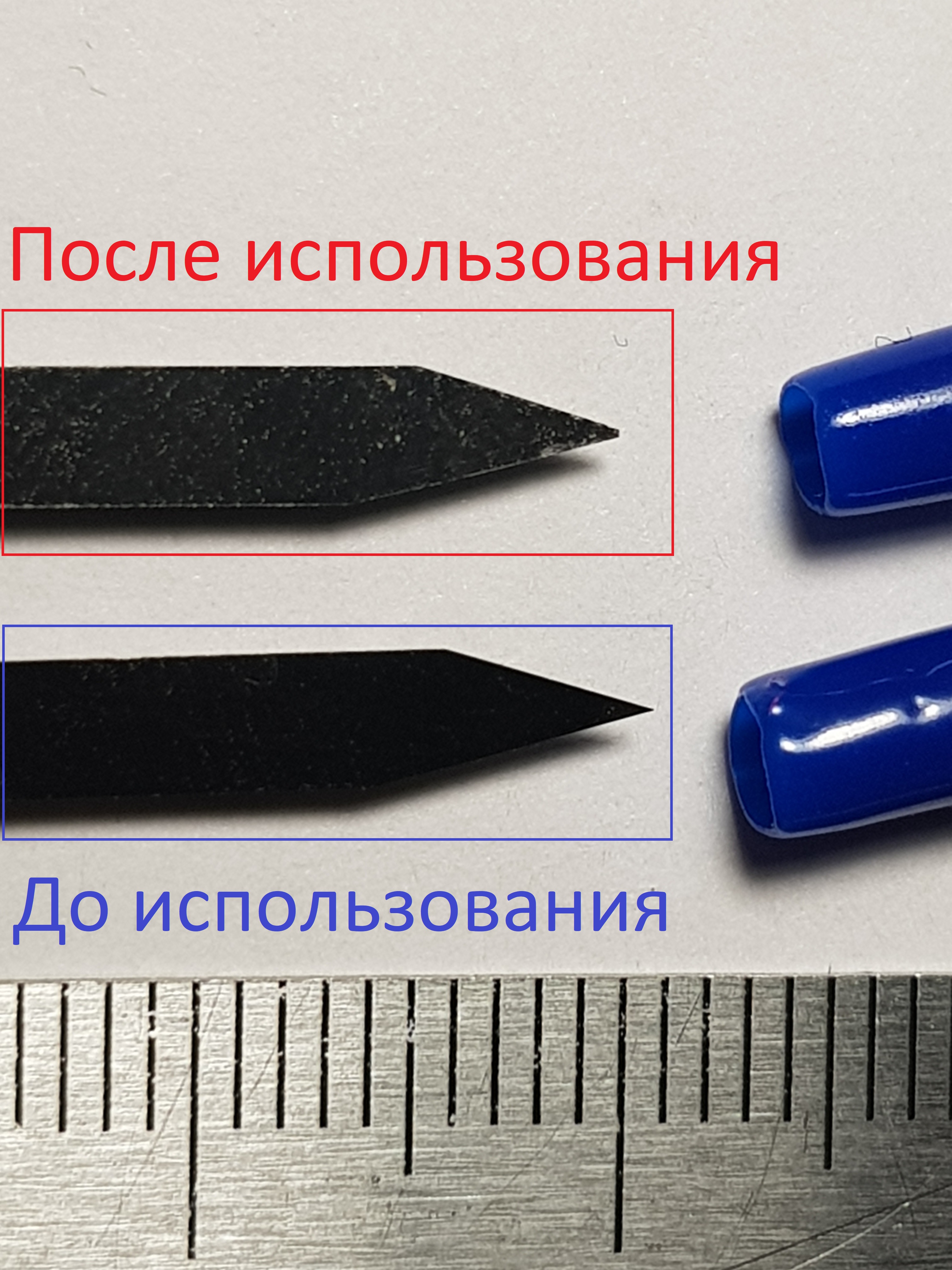 *Отдельно хотел уточнить что на любой скорости подачи и глубине у фрезы обламывается кончик и пятка становится ~0.2мм, после чего приходиться переустанавливать Z, пример в фотографии.