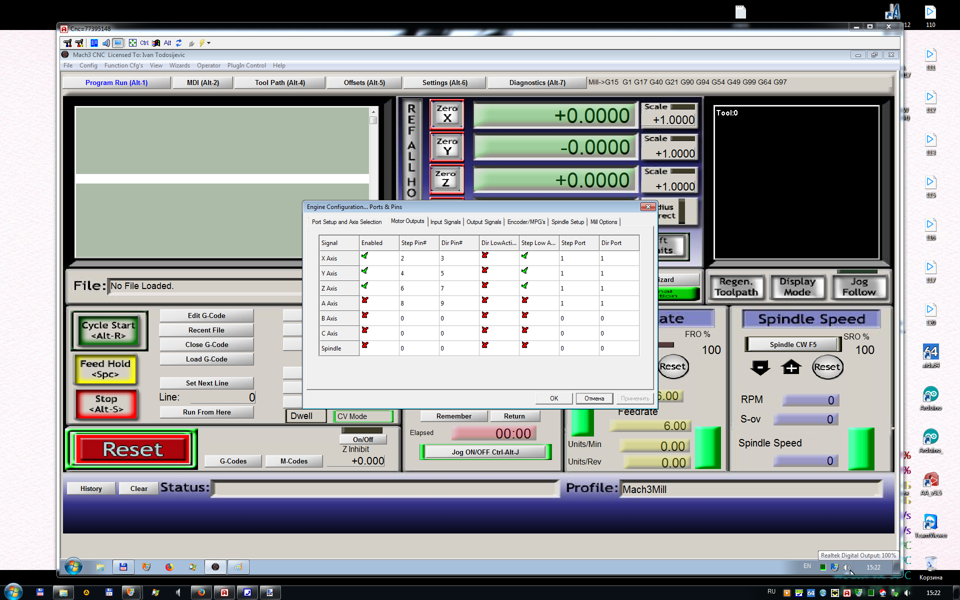 Rom327 писал(а):У тебя случайно сигнал Enable не активизируется? Когда станок в простое, вал оси Z можно провернуть?