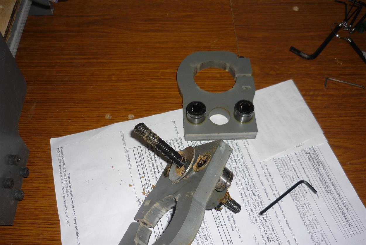 Заменил гаечки для начала на новые, все перемазал Циатмом 211 собрал и теперь преспокойно режу на 700мм\мин(до того не более 400), слишком мелкий шаг шпильки и движки пропускают если к примеру дуб режеш на глубину более 2мм за проход.