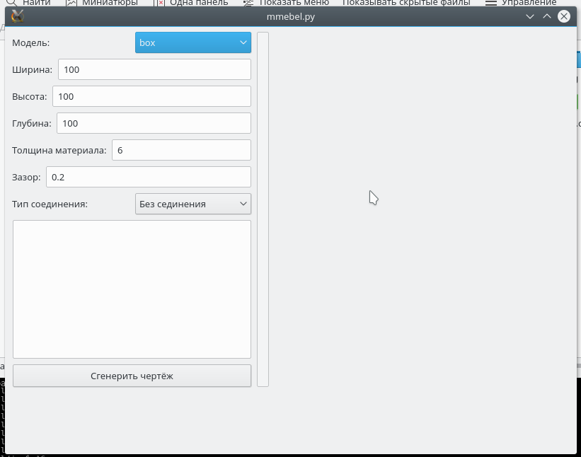 В целом сформирован интерфейс, как я его вижу, и программа рассчитывает две модели: простой ящик и корпус на шипах (такие корпуса делают для Arduino).