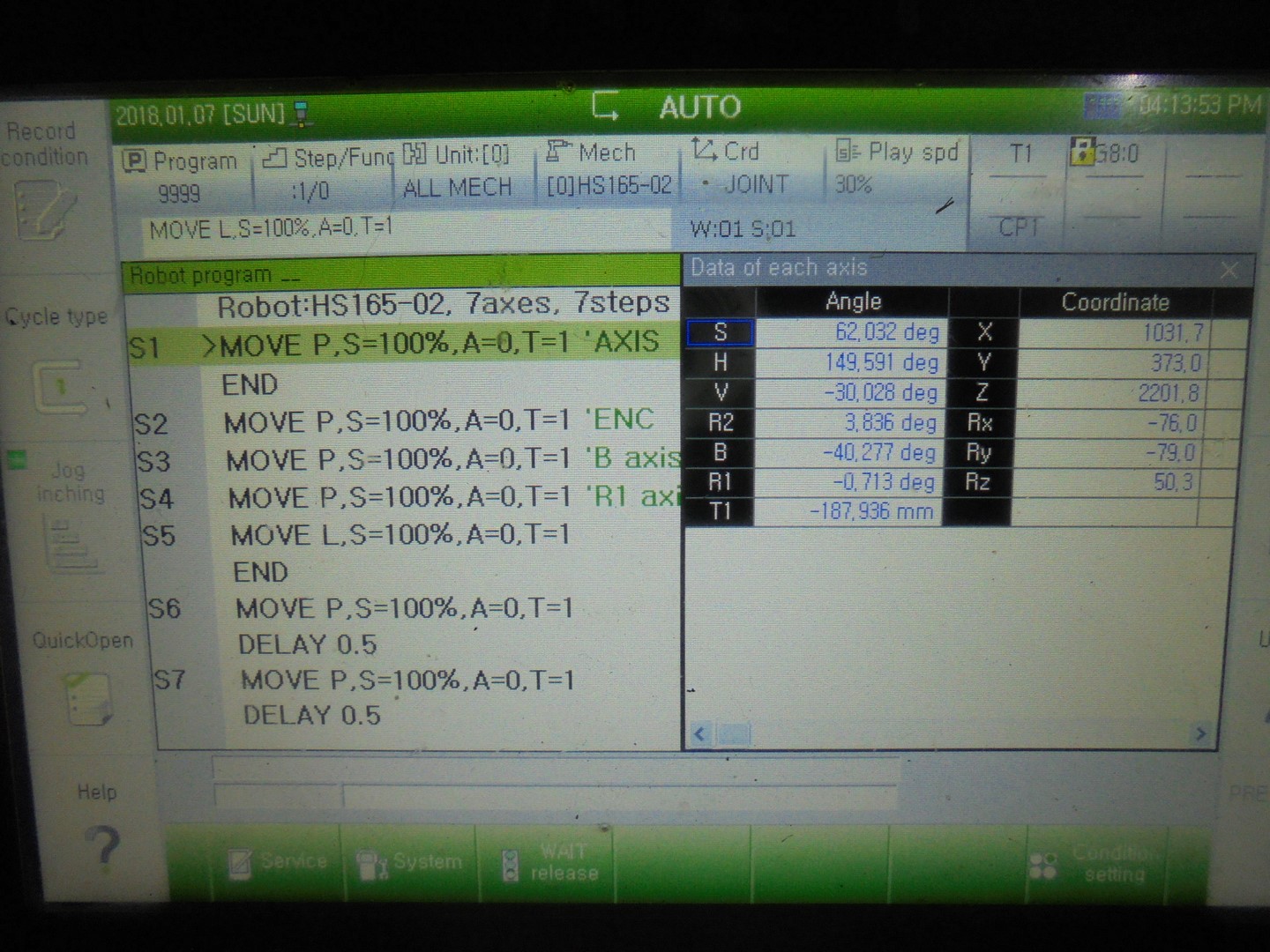 aftaev писал(а):Чтобы робот шевелился нужно эту кнопку удерживать в среднем положении. Нажимаете, слышите как в ящике щелкает пускатель, потом через пару сек. щелкают тормоза в сервах и можно крутить роботом. Это наверно сделано для безопасности, если пульт уронили или руку придавило - робот не будет работать