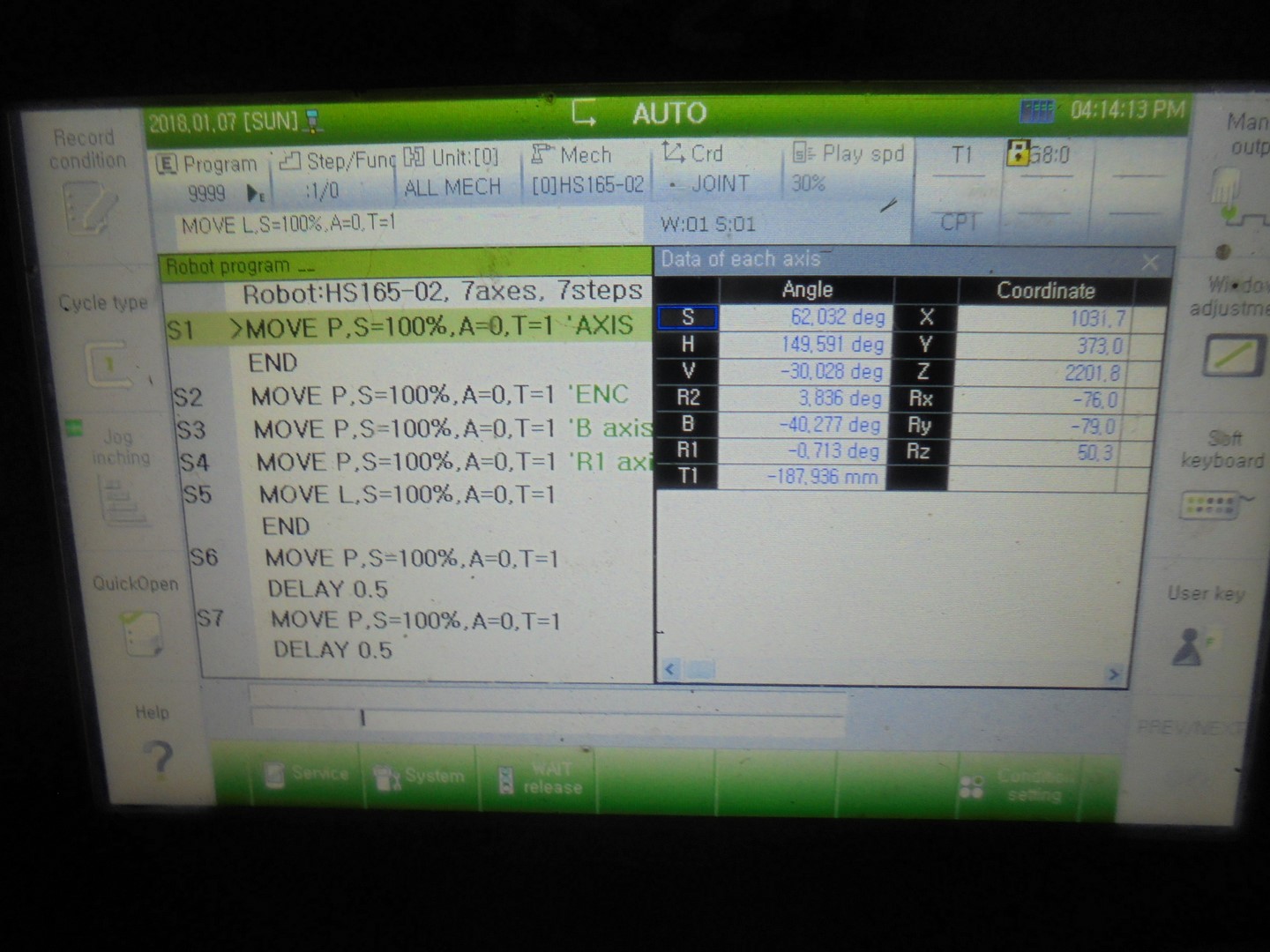 Включили ящик, все за сверкало, замигало вроде работает. Пошевелили осями вроде двигается. Для того чтобы в ручную шевелить осями: ключек должен быть повернут как на фото и рукой нужно жмакать большую кнопку под пультом. Начали крутить поворотные и все не работает :freak: