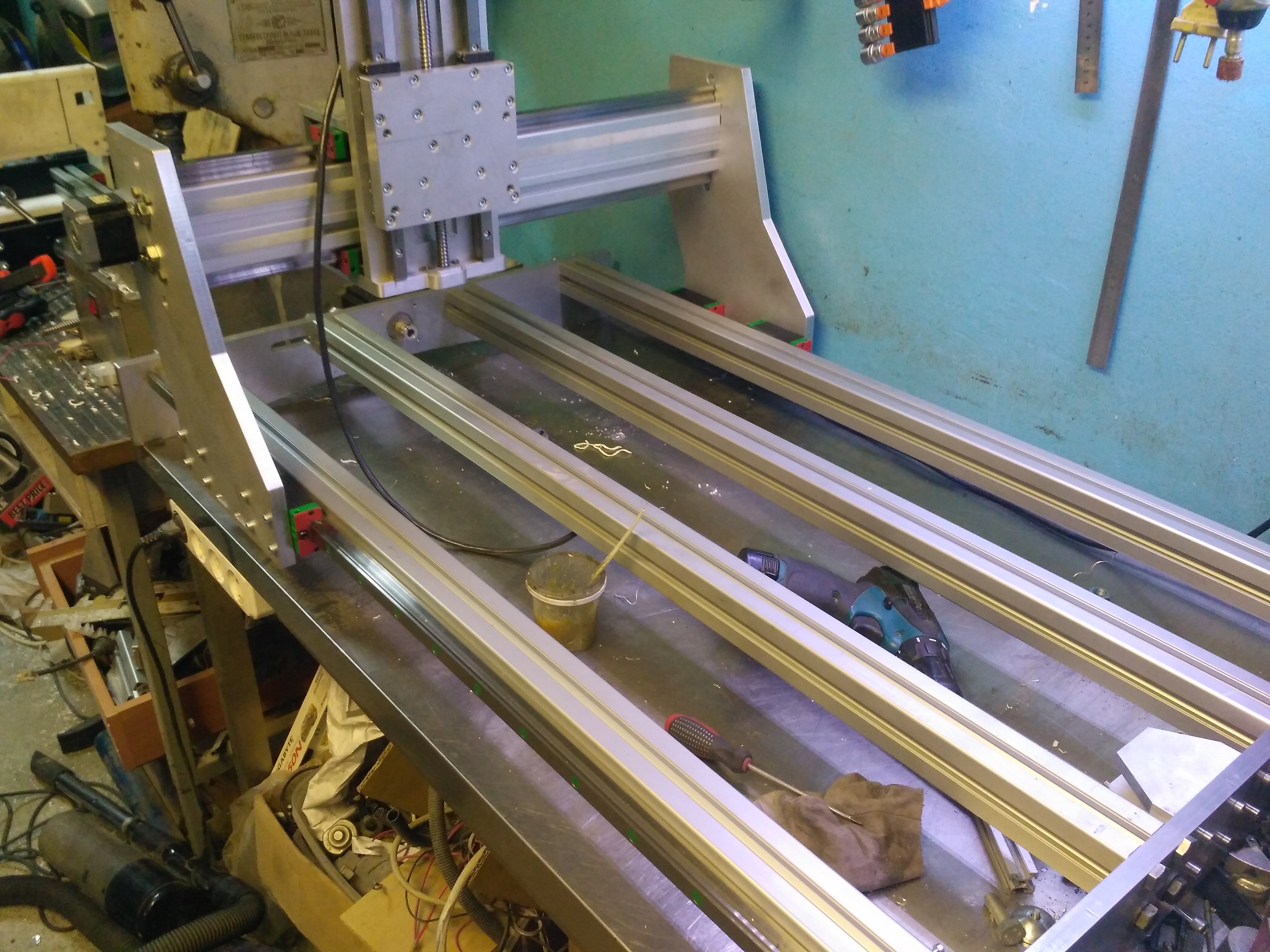За пару дней осилил тему уважаемого frezeryga http://www.cnc-club.ru/forum/viewtopic. ... start=1100, привлекла тем что есть готовая модель которую попробую перекроить под себя (сносно владею siemens NX 9, в нем проектирую и пишу уп) . Хочу все профиля заменить а железо пока не совсем понимаю как лучше всего сделать. Еще очень смущает что на моем станке не смогу обработать деталь за один установ для длинной оси 1000мм ( сумбурно написал надеюсь меня поймут). ШВП собираюсь использовать 1605 . Еще хочеся спрятать швп по оси Х как на этом фото, стоит ли повторять такую конструкцию?