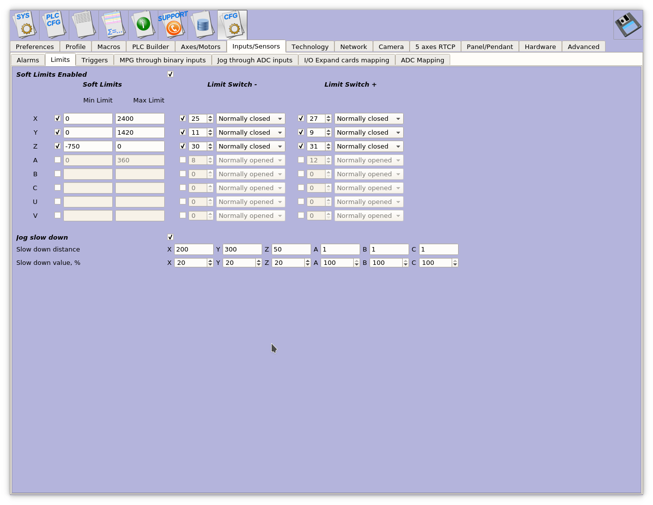 Машинные координаты также могут меняться из MDI кодомUmnik писал(а):еще вопрос - без датчиков хоума могу ли я как-то изменить машинные координаты (я так понимаю это те, что белого цвета)?