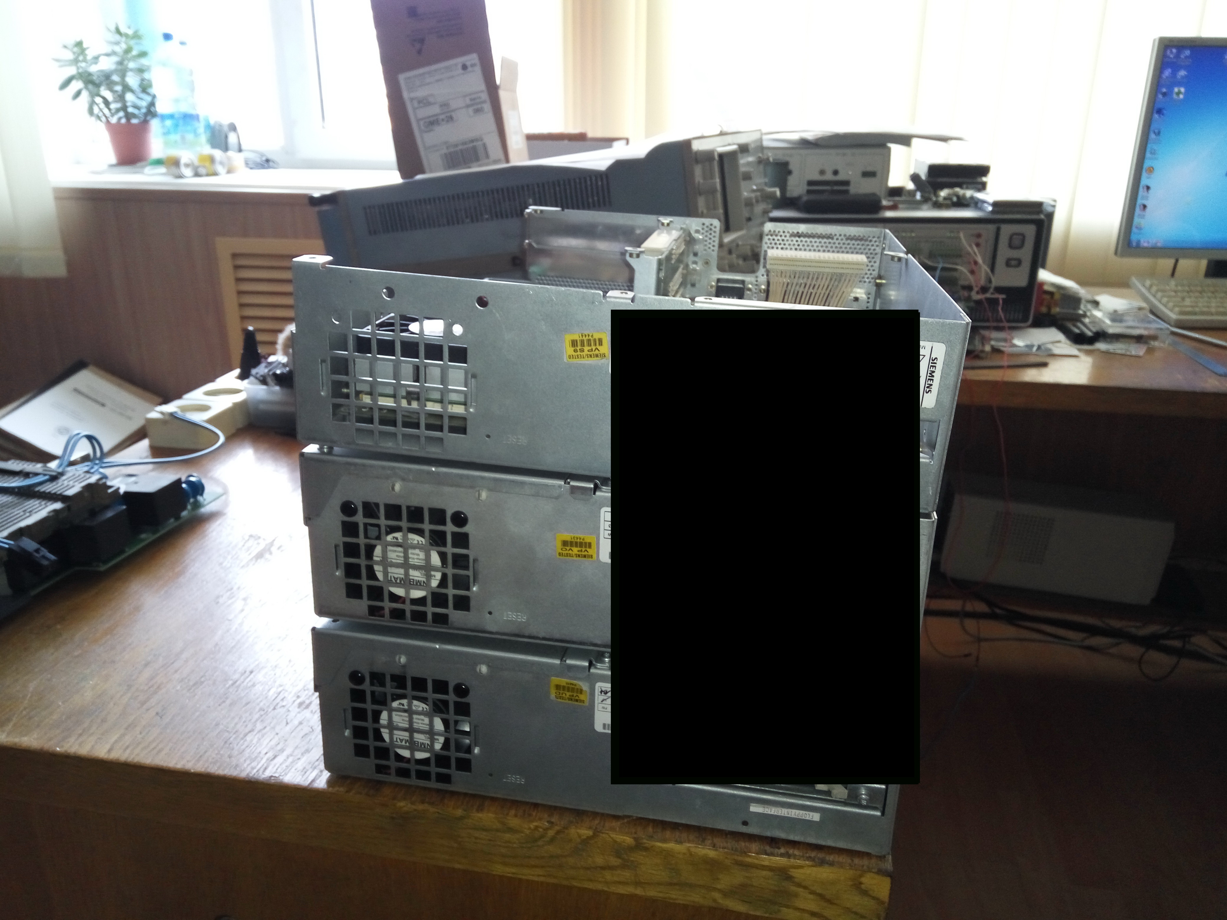 Блок питания приводов выпрямляет 380 и делает 600В постоянки, а дальше эти 600 вольт по двум блестящим шинам раздается всем желающим. Шины поменьше - 24В цепей управления. Так же, если кто-то сливает энергию и она никому не нужна БП врубается в режим инвертора и сливает ее в сеть. В общем вот так. Запас этой энергии получается неплохой, т.к. к каждом модуле есть чуть-чуть кондеров: И все хорошо, когда работает, а что происходит, когда ключ пробивает? )))