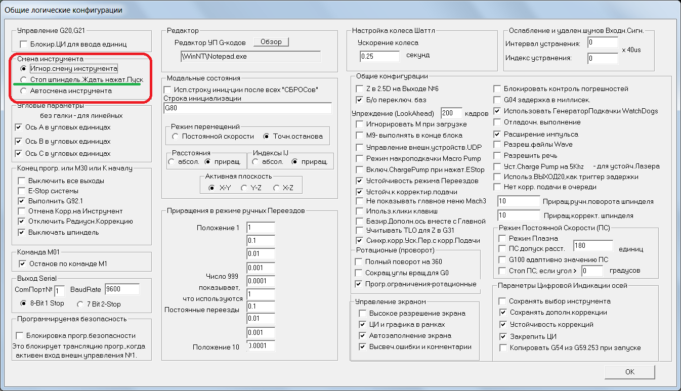Окно находится в мач, Config > General Config. Для каких изделий Мастеркам. Максимально сконфигурированный Мастеркам под станок(Мач не Фанук) УП нужно править ручками что бы Мач понял что от него хотят.bass писал(а): не нашел данного окна.... Мастеркам 9ый