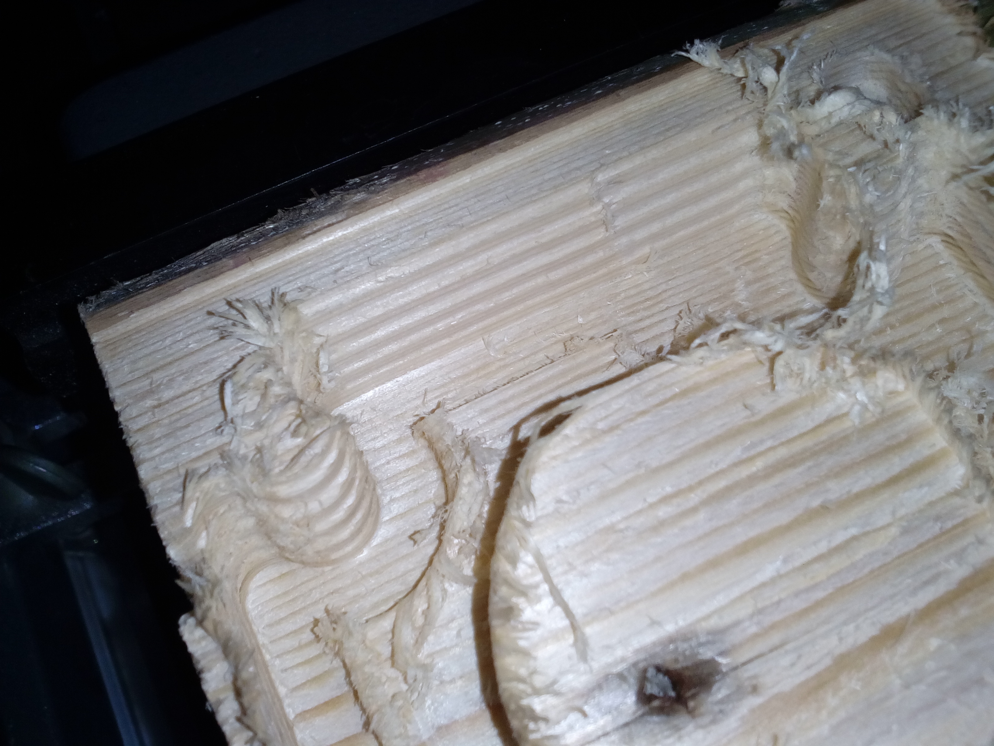 Проблема в следующем: по какой то причине станок каждую операцию вносит ошибку по координате Y. Это выражается в том, что каждый новый слой он срезает с ошибкой около 0.5 мм, в результате получается лесенка, указанная на картинке, соответственно пользоваться станком при таких приколах невозможно.