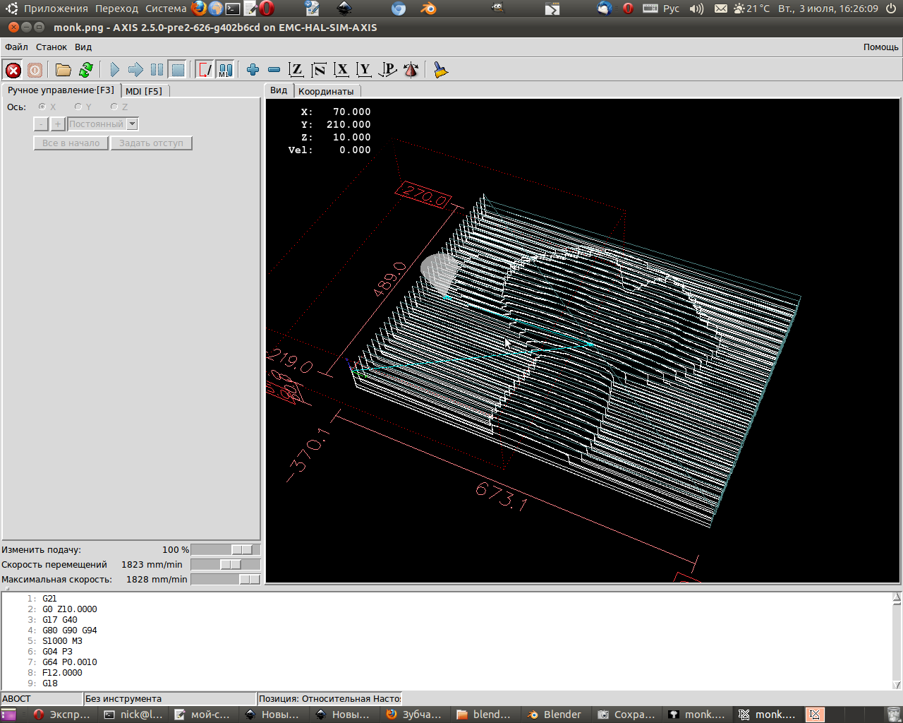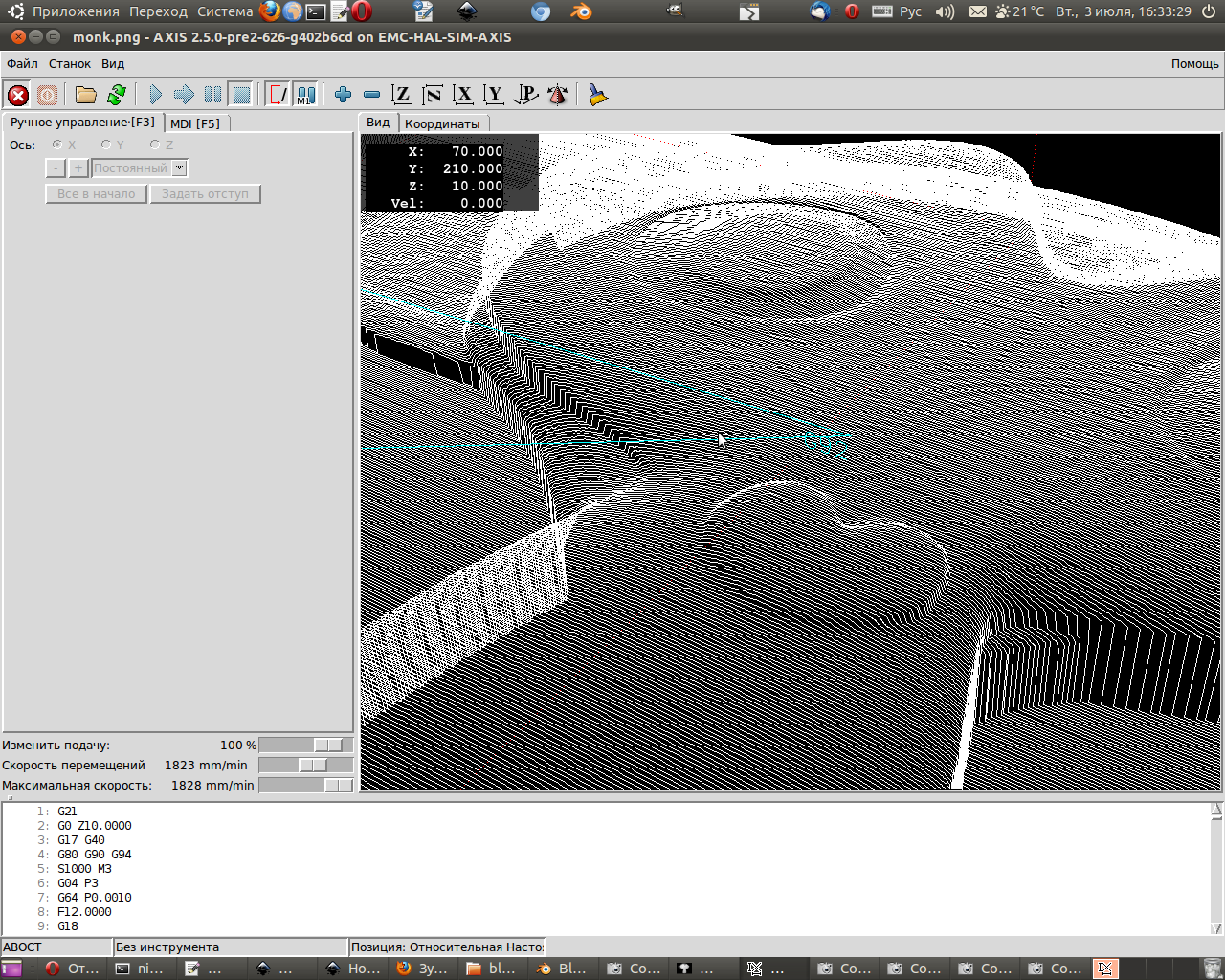 7. Делаем Gкод по полученной "карте высот". Для этого просто открываем файл png в LinuxCNC.