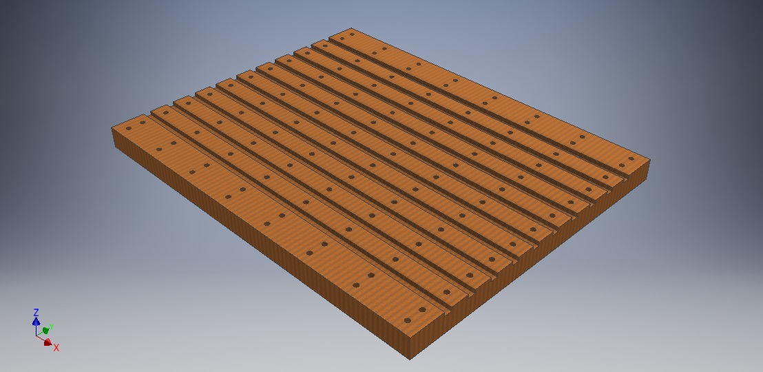 Стальными пластинами 49х900х8 делаю Т-паз. Винты потай М10. Расстояние между пластинами 11 мм под крепеж М10.