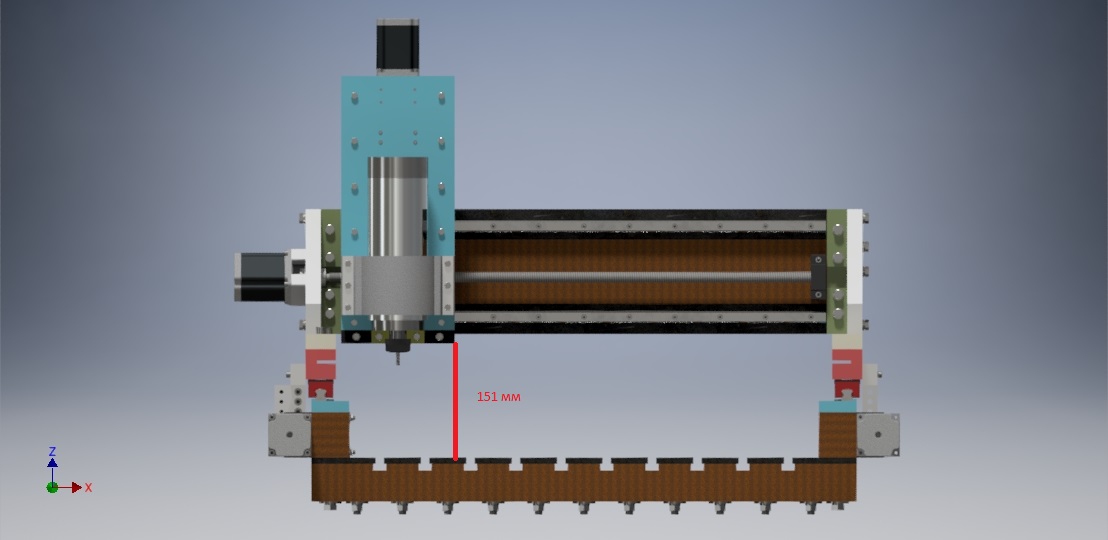 И рабочее поле по Z в реале намного меньше высоты под порталом и 160мм точно нету поскольку шпиндель в самом верхнем положении свисает ниже портала и +инструмент.