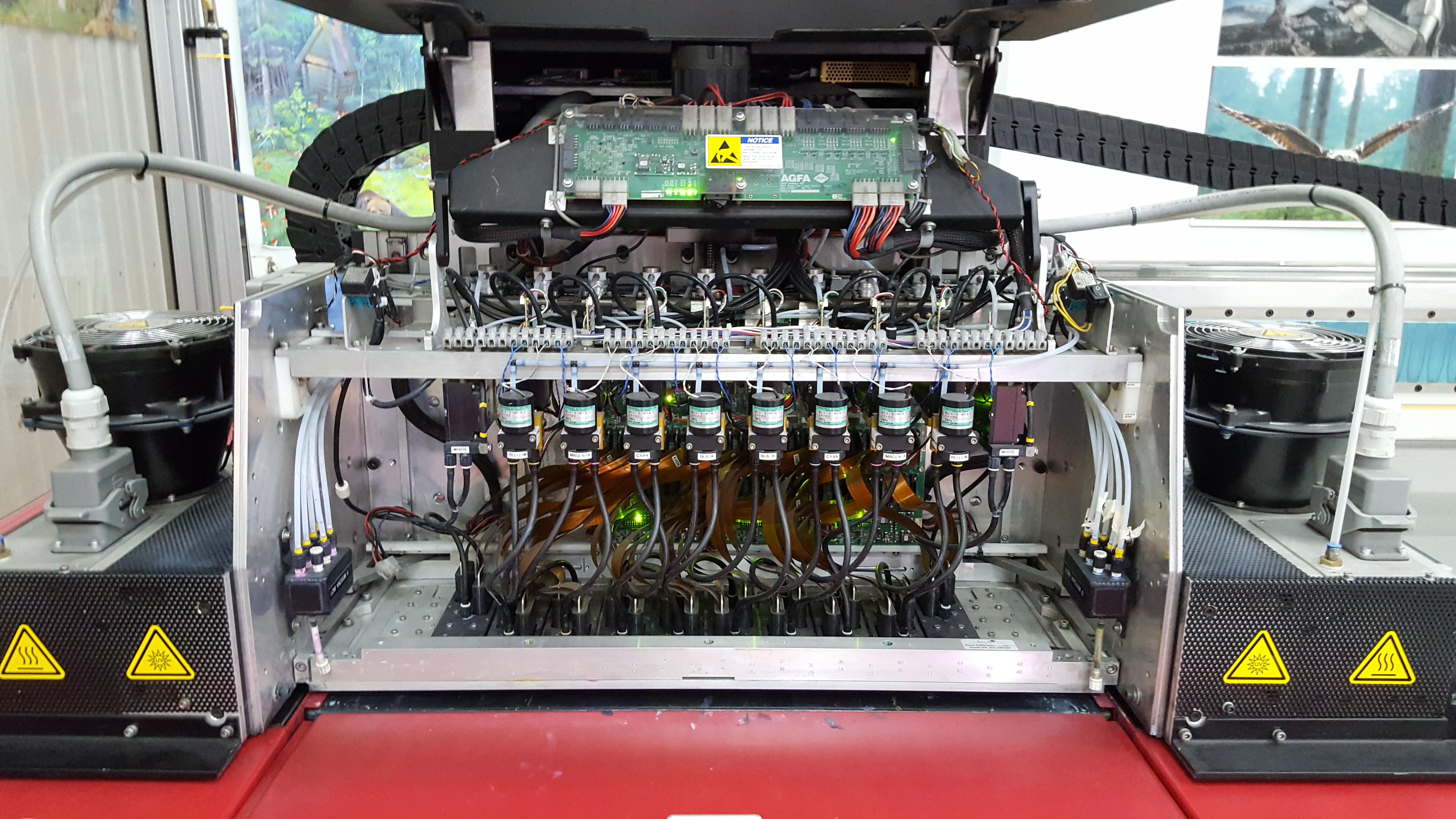 Излучение ультрафиолетовых ламп, установленных в плоттере AGFA Jeti 3020 Titan, мгновенно отверждает чернила, чем обеспечивается высокая цветовая насыщенность изображения и абсолютная готовность отпечатка к последующим после печати манипуляциям. Чернила отличаются широким цветовым охватом и хорошей адгезией к самым разнообразным материалам без покрытия - бумаге, самоклеящейся ПВХ-пленке, армированному виниловому баннеру, холсту, текстильным материалам, пенокартону, гофрированному картону, лентикулярным панелям, плитке, гипсокартону, стеклу, листовым металлам.