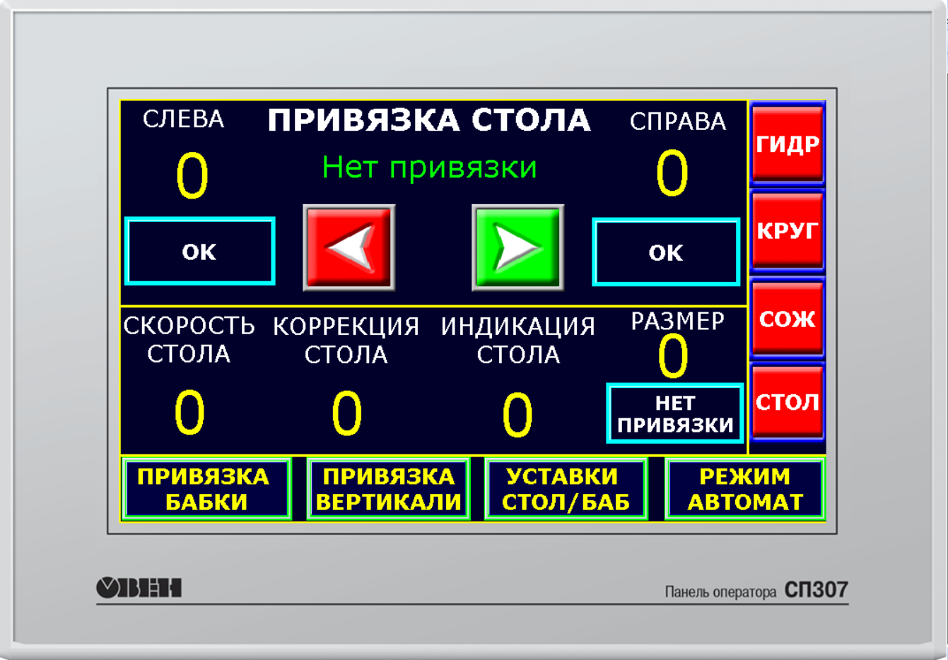 Реализовано три режима работы: ручные перемещения, автомат и режим правки круга. Для режима автомат и правки круга реализованы отдельные настройки и отдельная привязка.