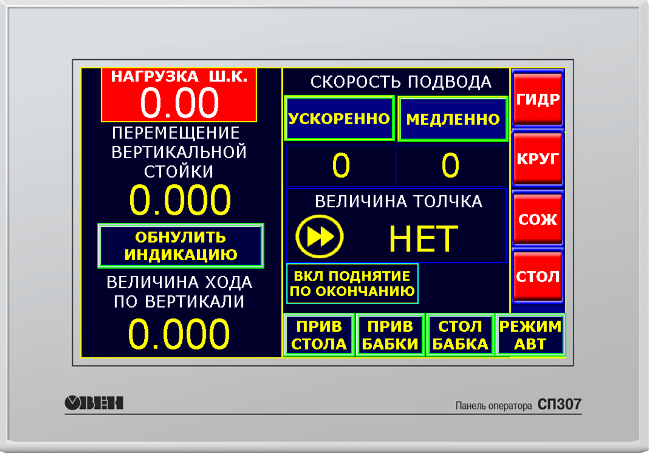 • Выбор типа движения вертикальной подачи в ручном режиме: ускоренно, медленно, толчок.
