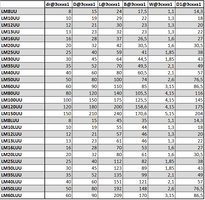 Линйные подшипники LMXXUU и LMXXLUU под валы от 8 до 150 мм.