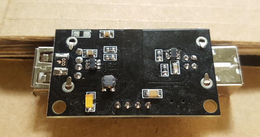 От китайских аналогов отличается наличием дополнительной защиты от статики как входа так и выхода (внешний ESD изолятор до 15Кв), наличием предохранителя 200мА на выходе, разработка платы с учетом всех рекомендаций производителя микросхемы.