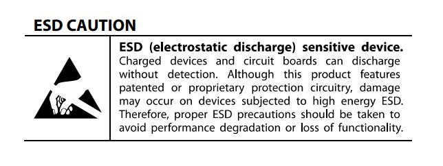 Жаль, что у Аналогов нет такого отличного схемотехника как ты, иначе они бы, в оценочной плате, не ставили ESD-шку (специально для тебя скрин с даташита)UAVpilot писал(а):Для их защиты от статики достаточно последовательных резисторов 10-50Ом