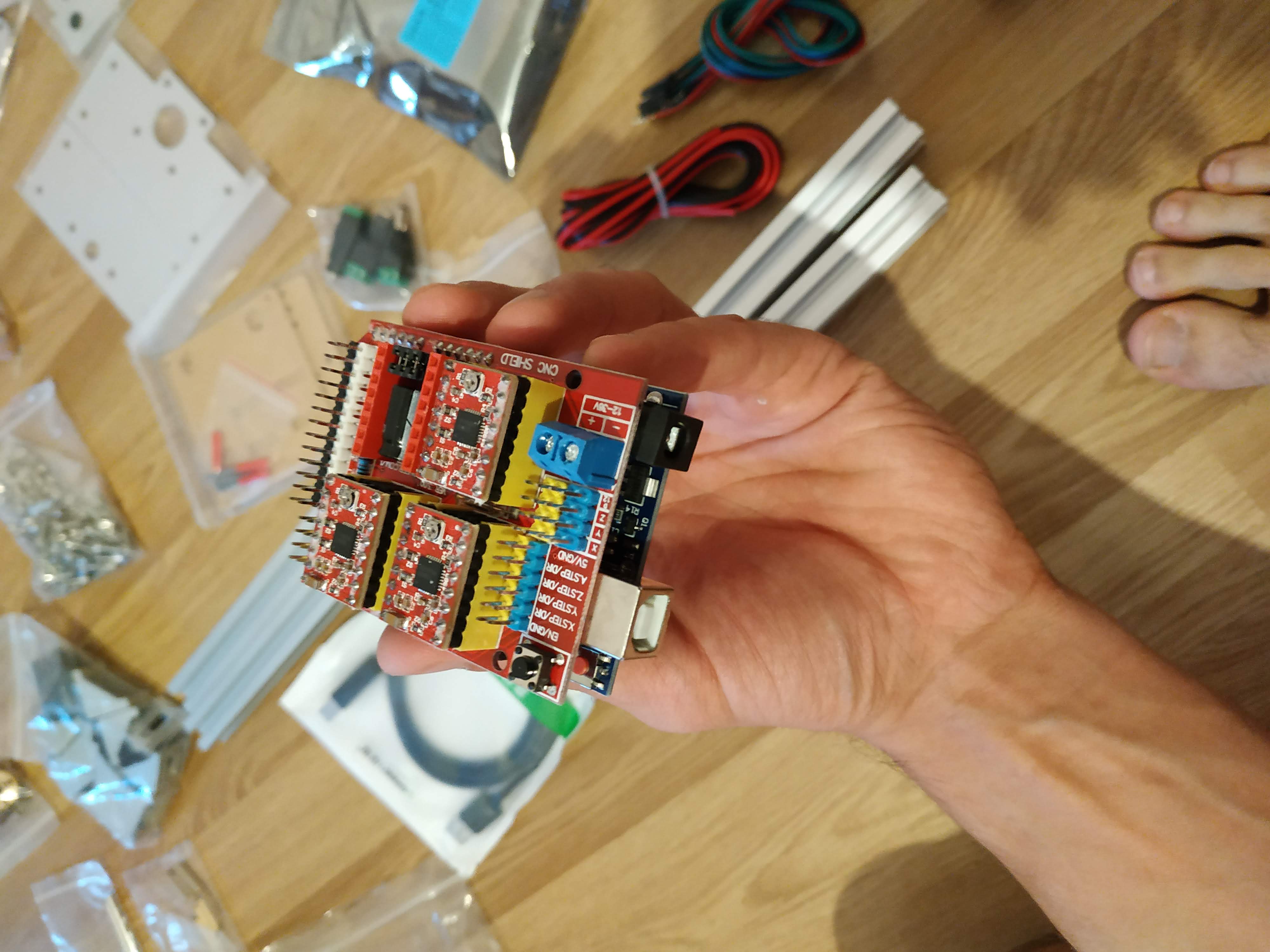 муфты, ходовые валы, напрявляющие, все что необходимо для сборки, ключи (набор почти самодостаточен, только для пайки нужен будет паяльник (половина соединений в электронике на зажимах))