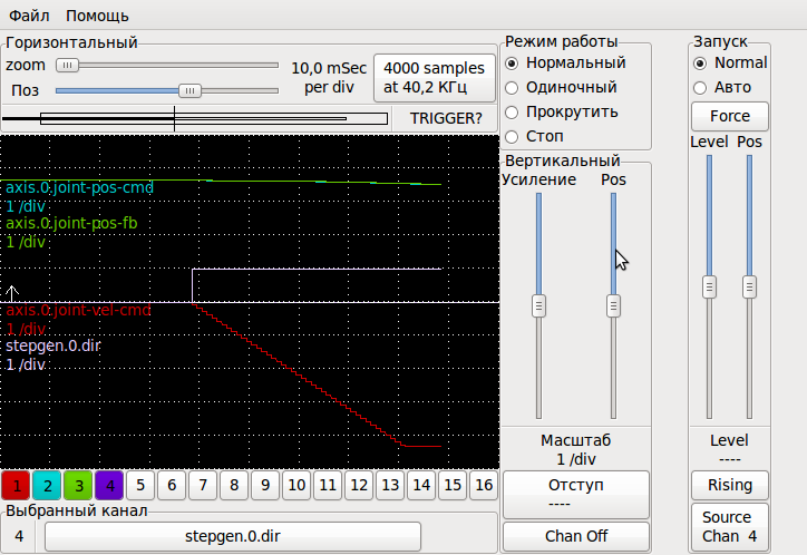 А у тебя обратная связь в LinuxCNC как-то заводится или все внутри сервы? Если внутри сервы то управлять по скорости смысла особого нет.de-signer писал(а):А что если stepgen'у управлять не положением, а скоростью! Как только переключил на управление скоростью (ctrl_type=v,v) сразу всё стало на свои места. Никаких лишних движений - всё отлично.