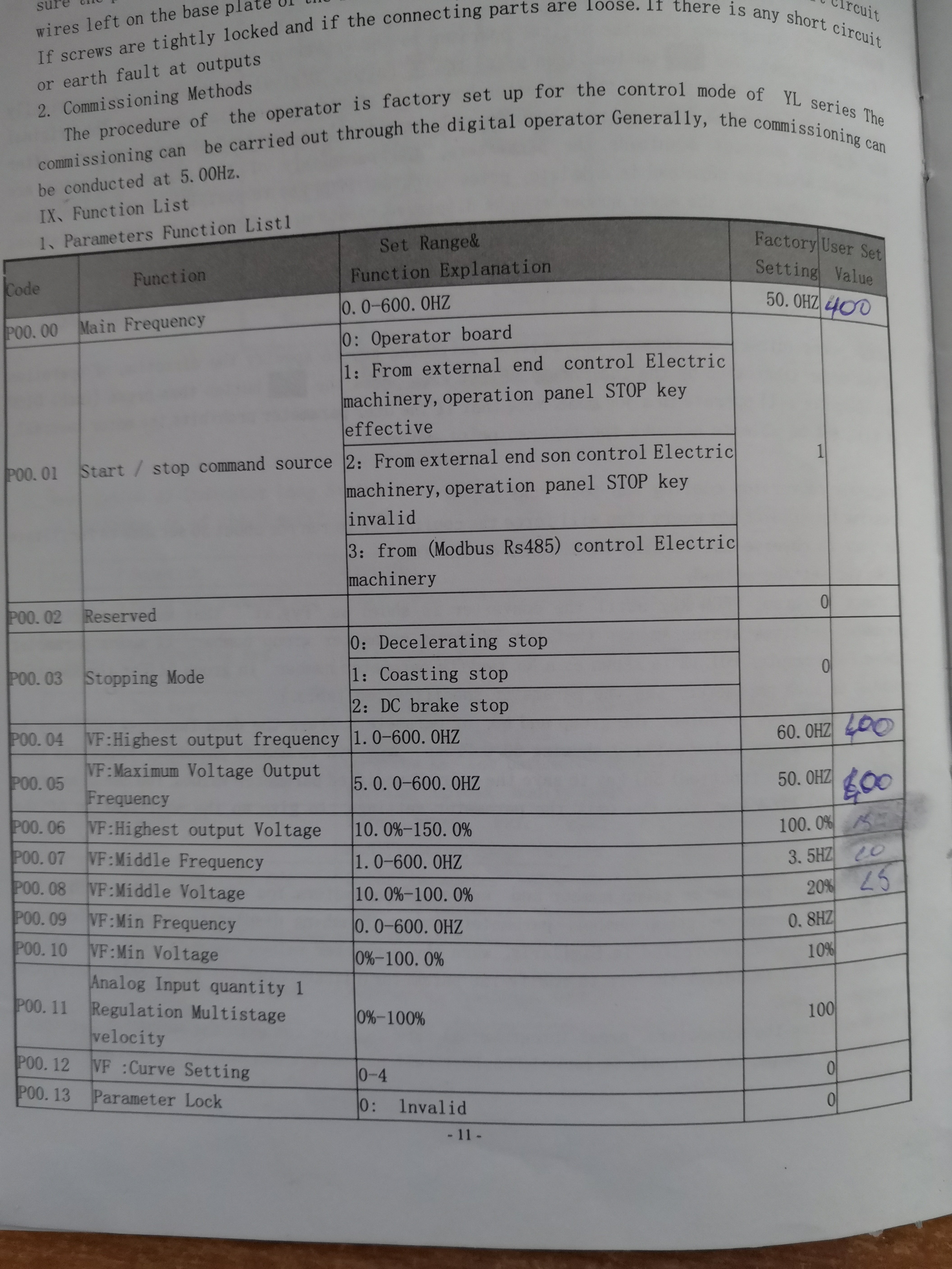Настроил частотник в соответствии с этим видео. Вроде настройки все были введены нужные, остальные настройки остались заводскими.
