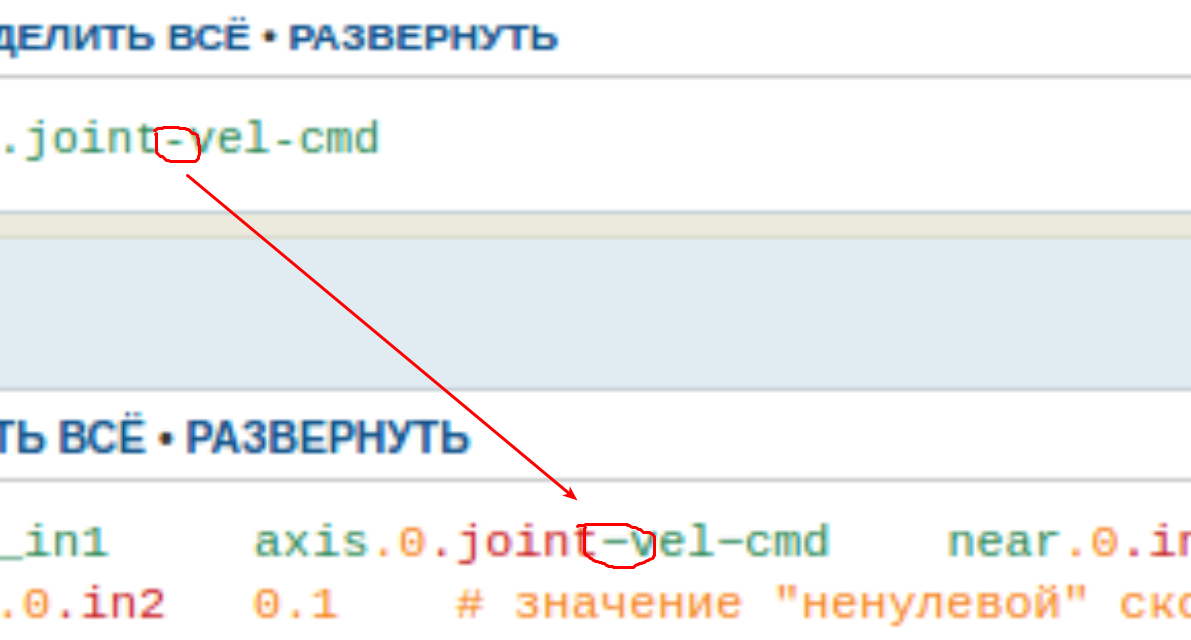 net   near_in1     axis.0.joint−vel−cmd    near.0.in1     # значение скорости оси на вход1 near