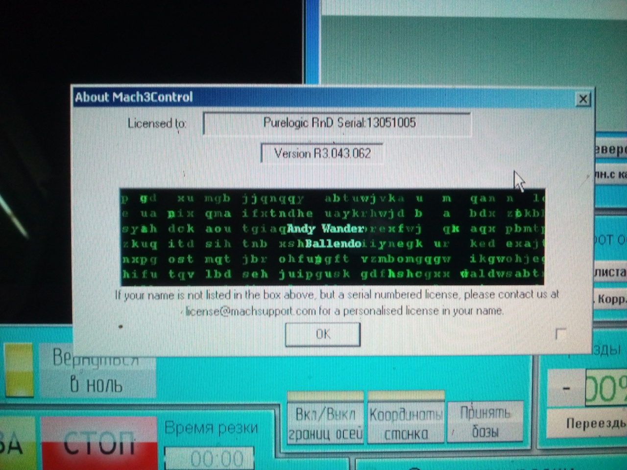 По порядку вопросов... Заземление норм. Выести код в окне программы не могу - окно модифицированно изготовителем станка. Винда ХР, интернета нет (если оператор свистком не балуется., но не попадался...), везде мм - программа рабочая отработанная до краша. По Мачу, в окне колибровки осей стоят мм, при работе на экране индикация "мм", может еще где посмотреть что б не дюймы? :thinking: