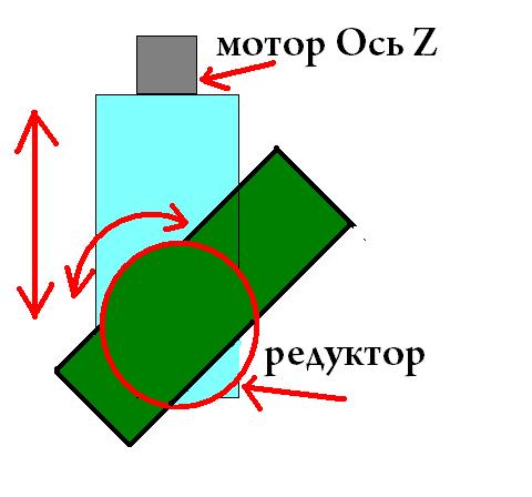 поворачивать целиком платформу Z. то есть наклоняется вся ось Z с рельсами, ШВП, мотором оси Z и шпинделем само собой. При такой компановке глубина рельефа будет задаваться осью Z. Так сложнее реализовать так как нужен по мощнее редуХтор.