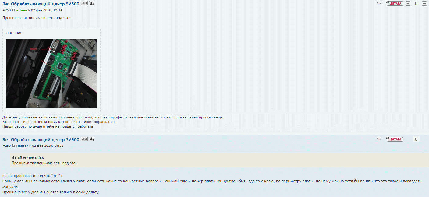 интересно получается да ? фотки то я просил сделать.... тока просил сделать чтобы одному зеленому "маштеру" помочь.. ибо на той же страничке у него явно возникают затруднения даже не в идентификации плат, а просто с залезанием в меню програмы... То есть тебя попросили сделать фото твоих плат, чтобы помочь тебе же в них разобраться.. и за это должны еще поблагодарить ??? в ножки поклонится ? ты ниче не перепутал ?? за тебя сделали 90% ТВОЕЙ работы, и еще должны быть благодарны ? видимо за то что ты позволил это сделать ? зачот! а теперь еще и преподносишь это как "это было сделано специально для тебя" ?? огонь! СПАСИБО АФТАЕВ ЗА ТО ЧТО ОТФОТКАЛ НЕ ТЕ ПЛАТЫ В КОТОРОЙ У МЕНЯ ДЫРКА, И ДО ПРИЕЗДА МОЕГО СТАНКА.....