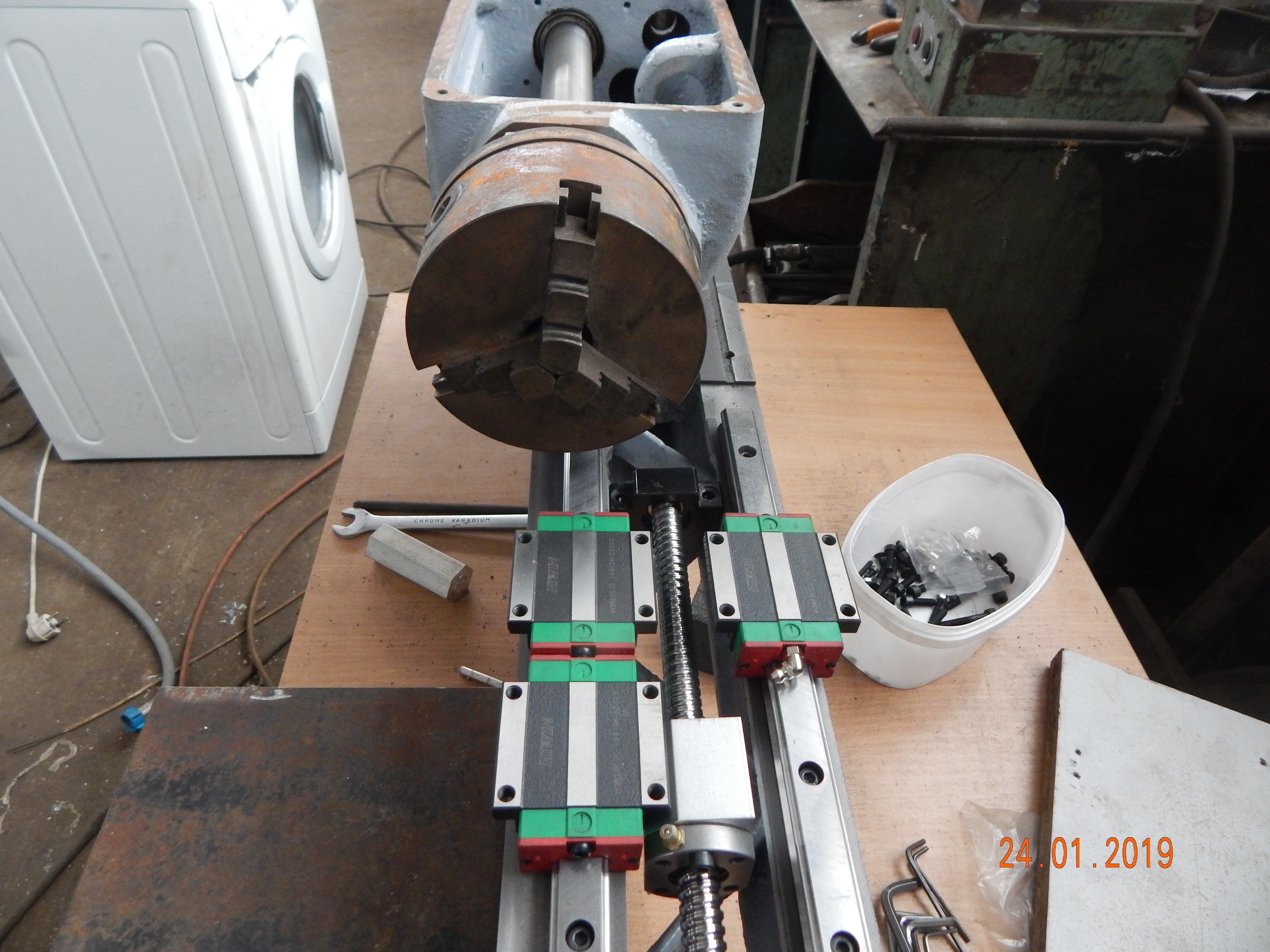 Мне не понравилось, что смещено не в ту сторону, если резец со стороны как обычно на станках, то вылет в воздухе до опор получится огромный. При смещении в другую сторону было бы гораздо приятней. Или там на 3 картинке патрон с коробкой не прикручены и криво просто поставлены сверху на раму?