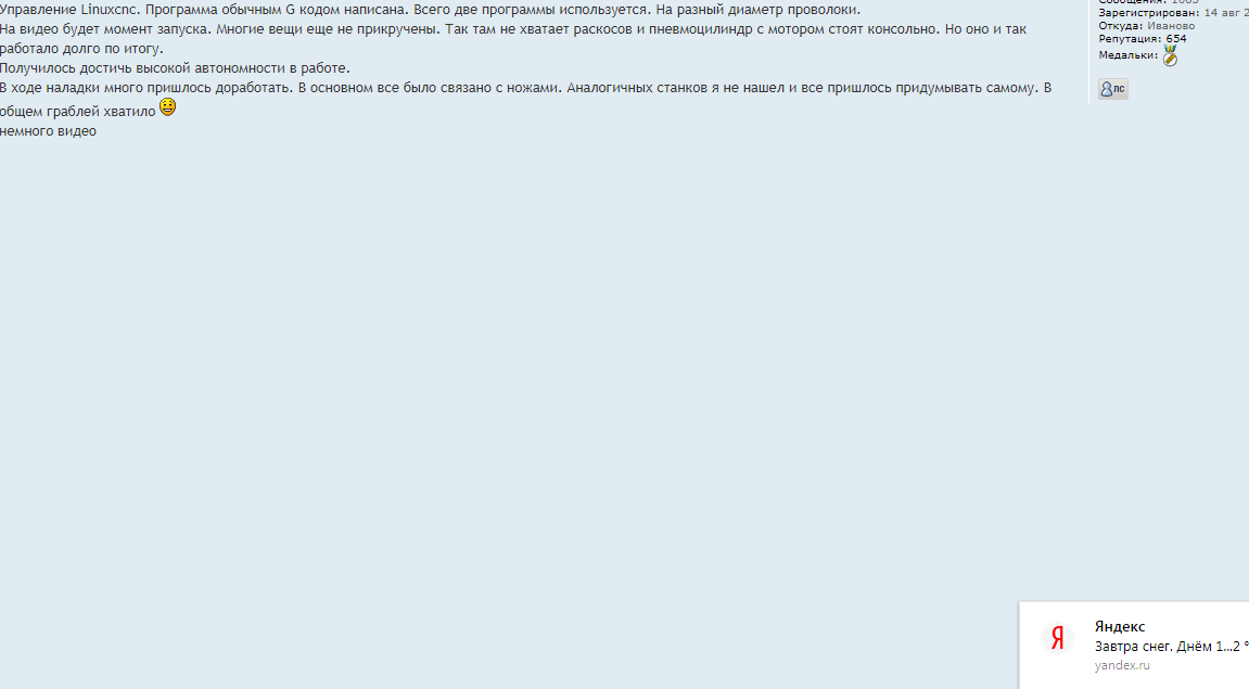 Управление Linuxcnc. Программа обычным G кодом написана. Всего две программы используется. На разный диаметр проволоки.