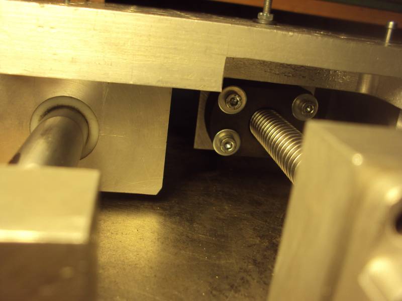 Сегодня нарезал резьбу в тех местах где крепится гайка. И стянул все это дело винтами.Винт в гайке ходит с легким, легким натягом. Мертвого хода вроде как нет... но это уж надо будет пробовать когда подключу шд к контроллеру... эксплуатация покажет короче говоря. Выточил соединительную муфточку винта с шд.