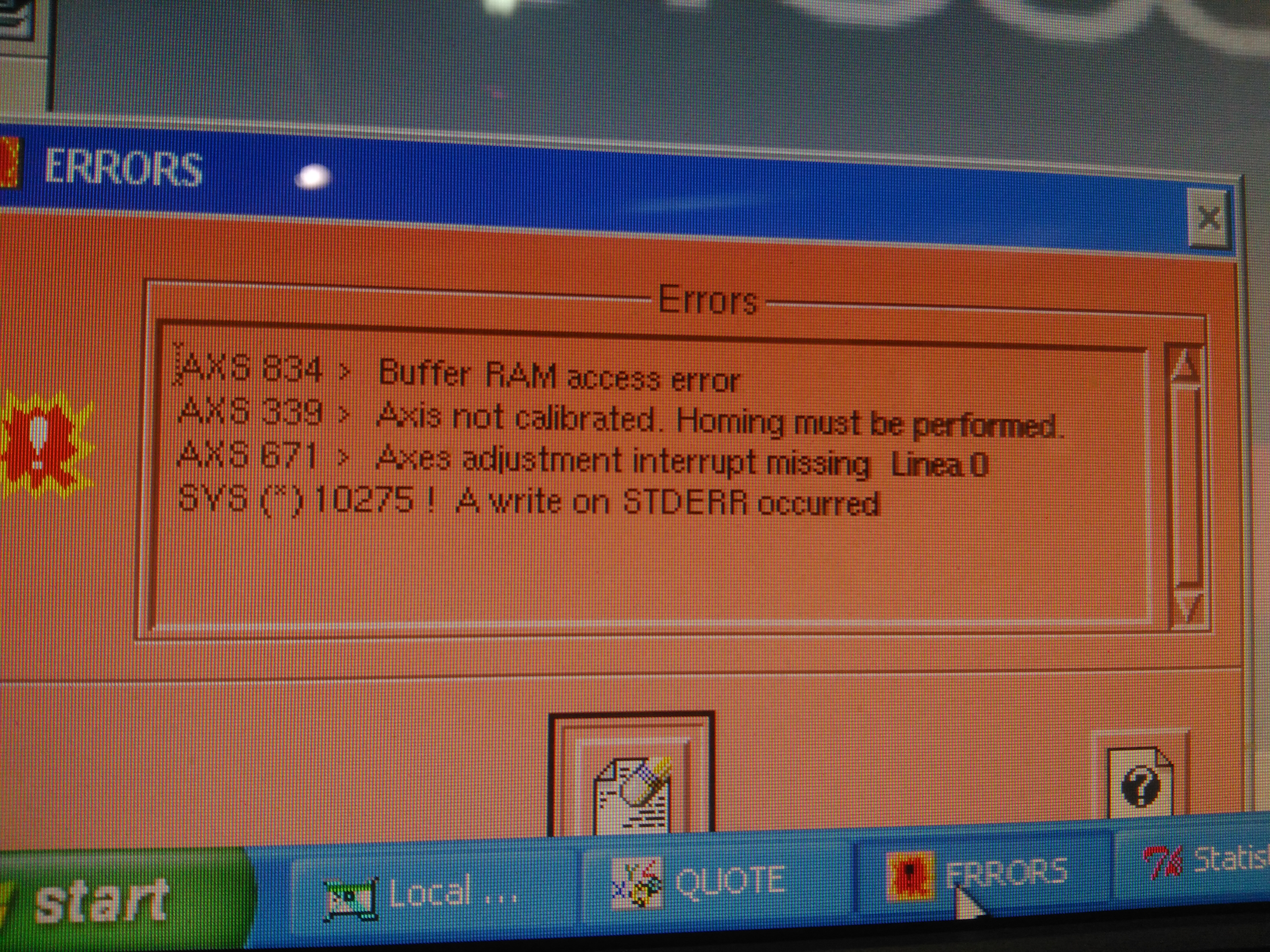 Добрый день. прошу помочь. в станке выскочила ошибка фото прилагаю. кнопка мощности (белая не загорается). раньше пару раз была эта же проблема. была вода воздухе, сливала через клапан, перезагружала, и все работало. сейчас всю воду слили, даже сняли датчик воздуха и через него вода вышла, и все равно не включается кнопка мощности. предполагаем что в компе дело или что еще подскажите. (все кнопки аварийные проверяла)