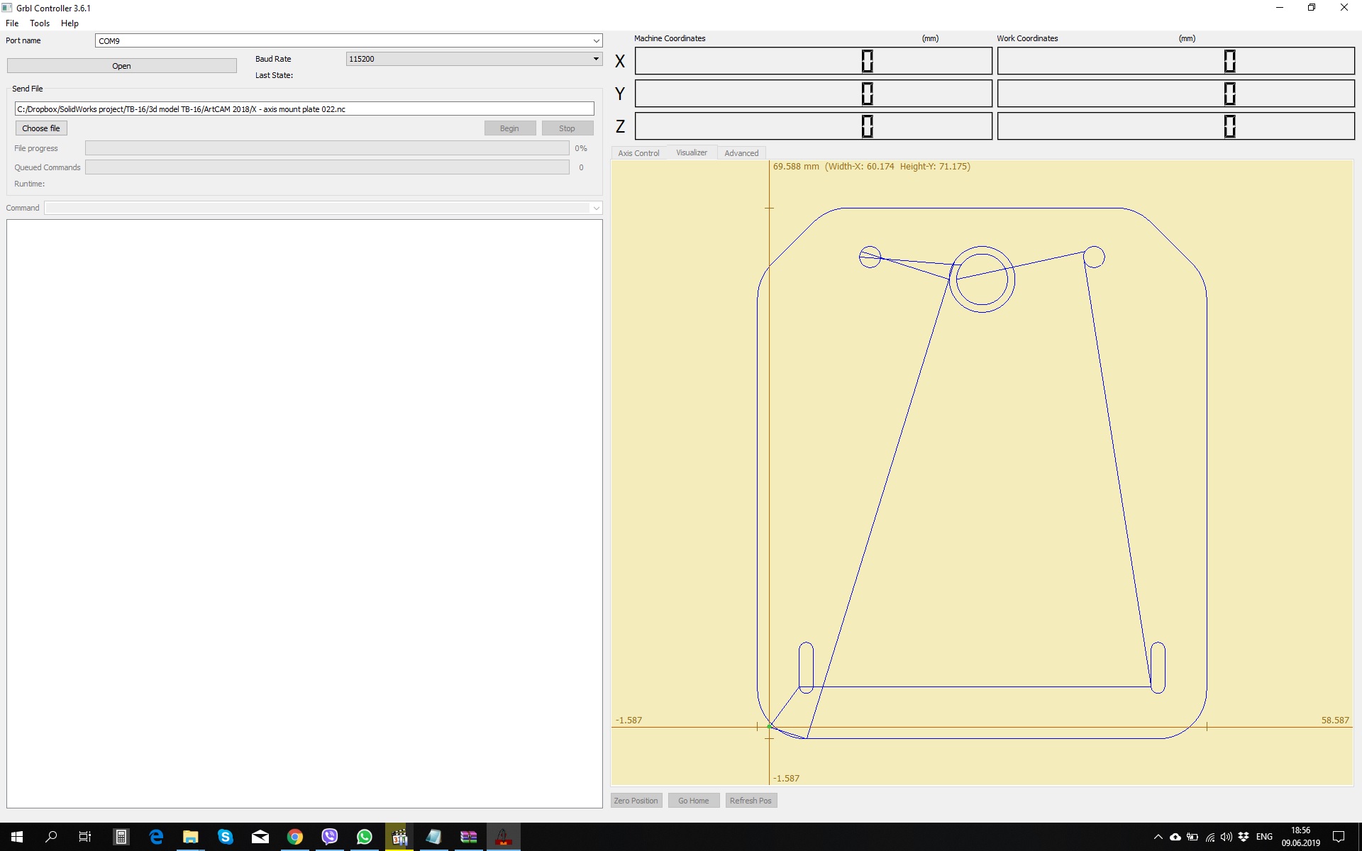 Верх заготовки - это ноль!! (так что фреза будет опускаться ниже после запуска кода до -6,1мм)