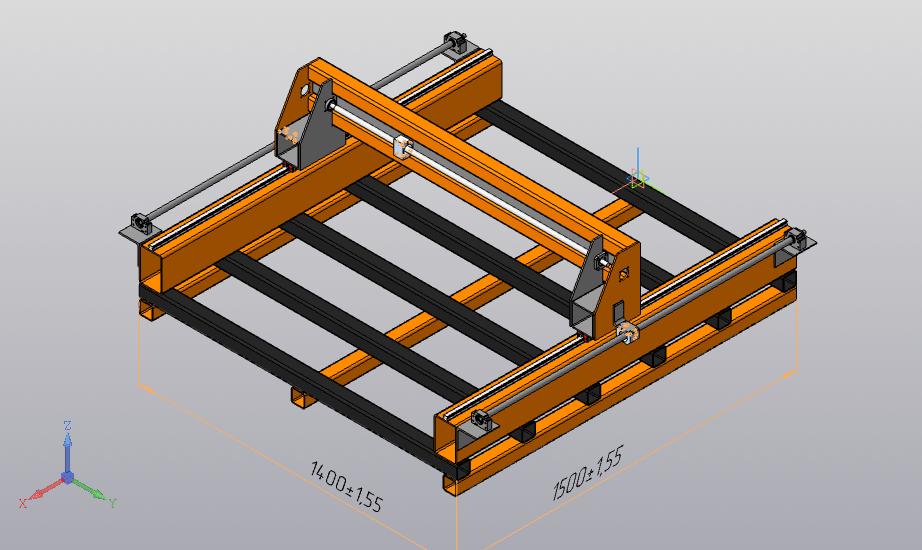 Пытаюсь накидать общую компоновку станка. Планирую делать из стальных труб, собирать на болты, сварку свести к минимуму.