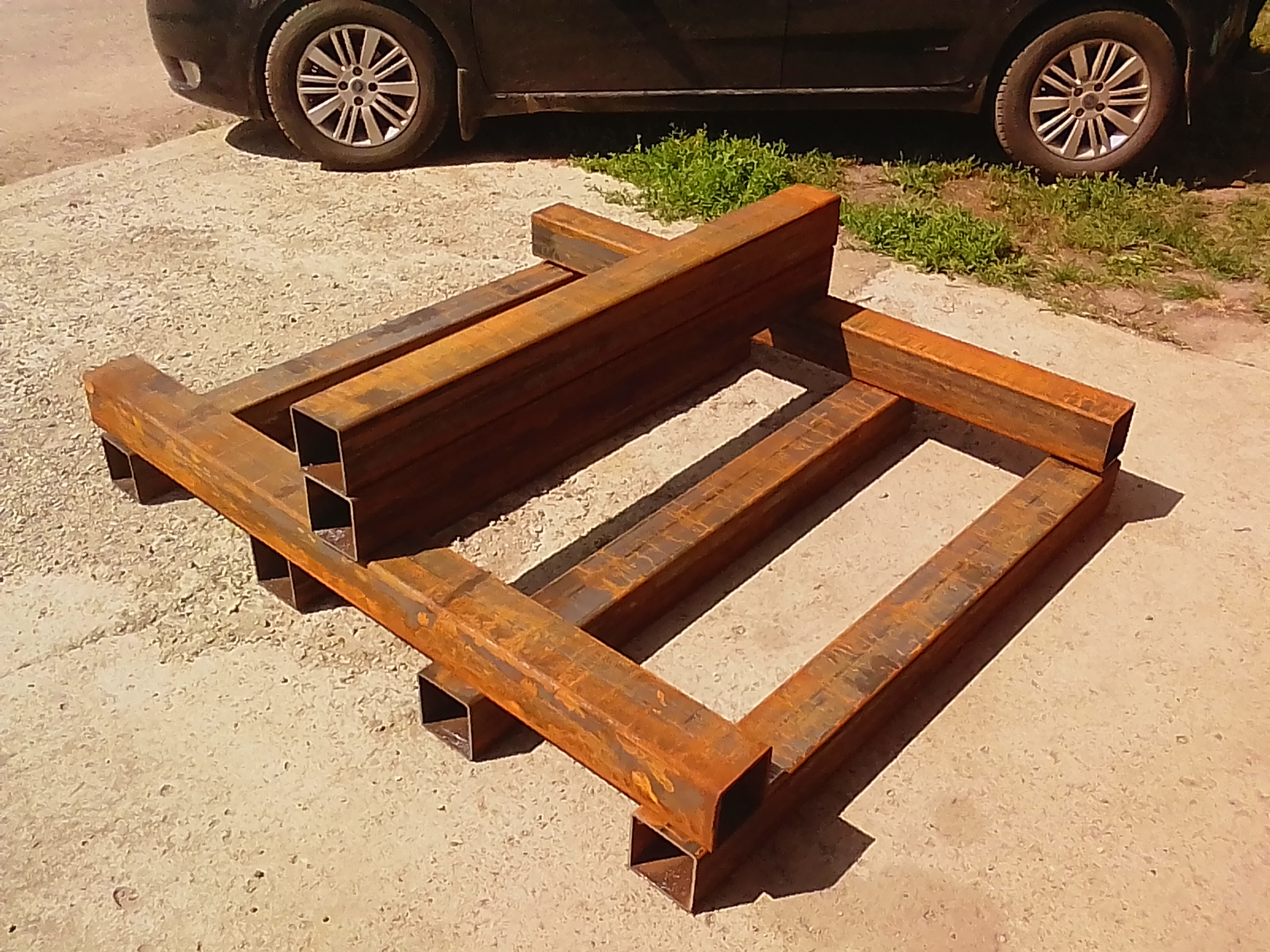 Несущие трубы 150*100, перекладины 60*60, на портале 2 60*60 и 1 60*40. Листовые детали 6 мм.
